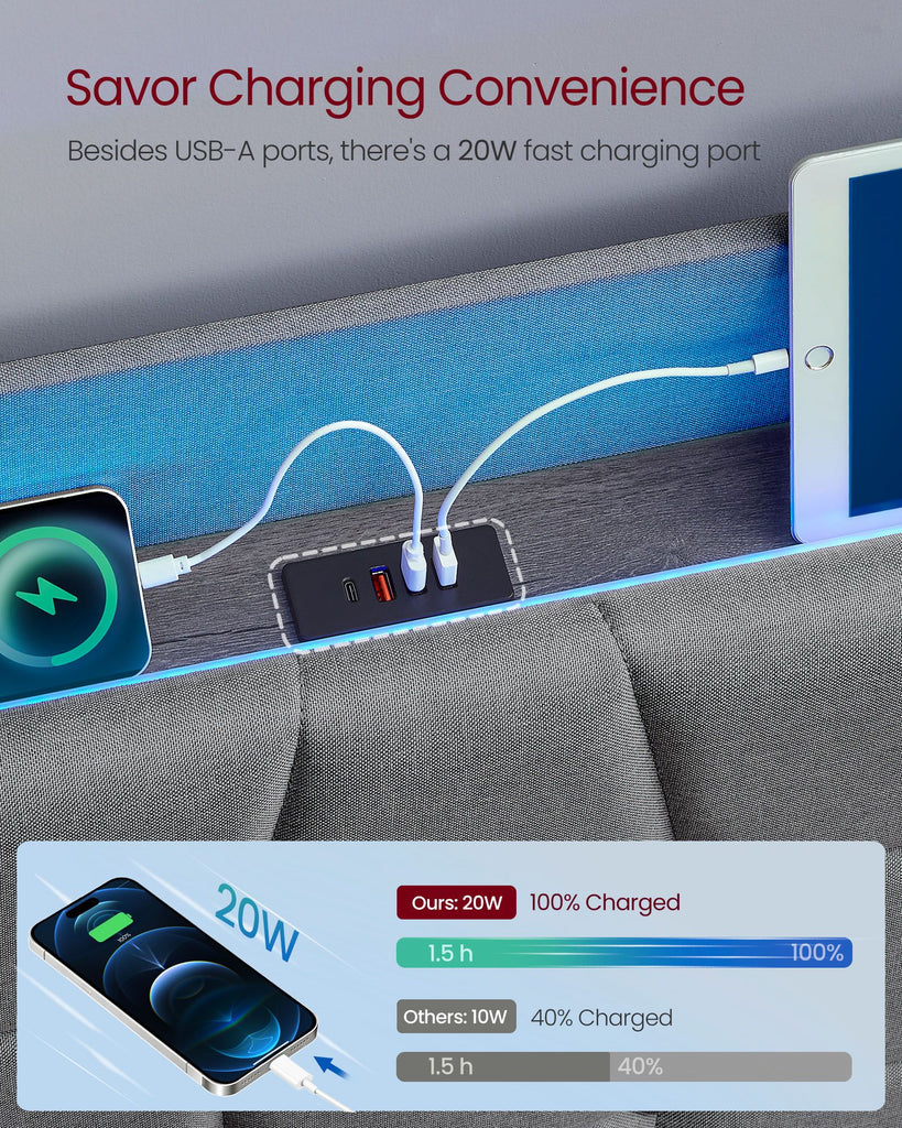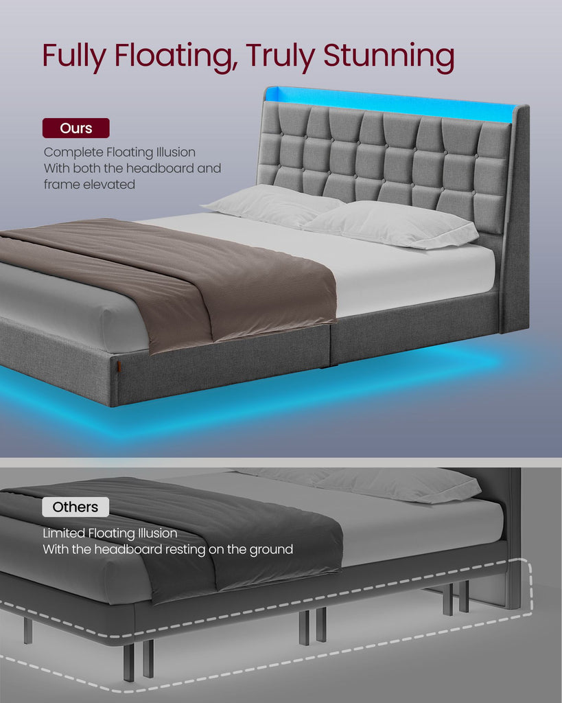 Product Size (with Headboard and Legs): 86.6"L x 63.4"W x 43.3"H (219.9 x 161 x 110 cm)