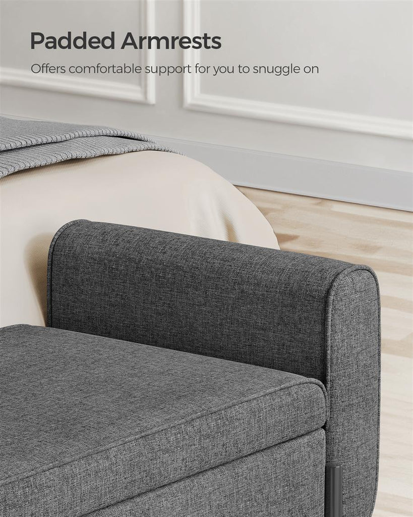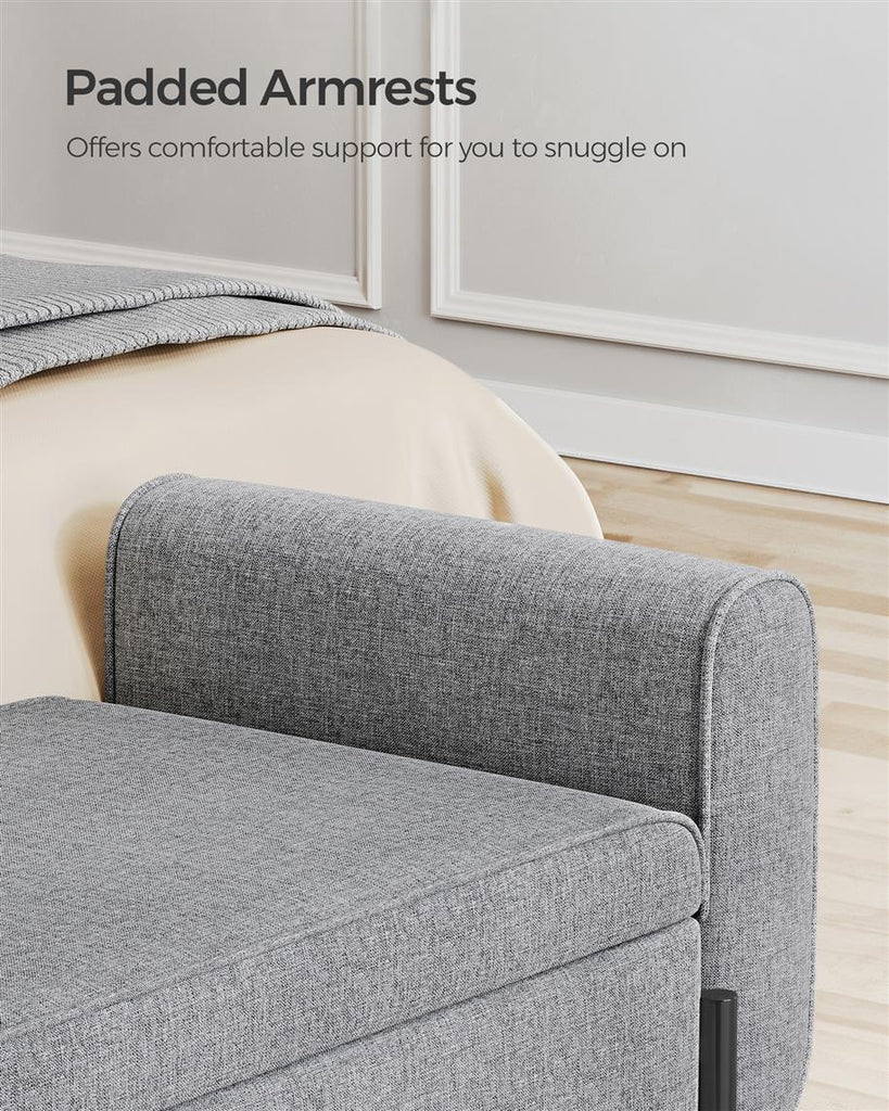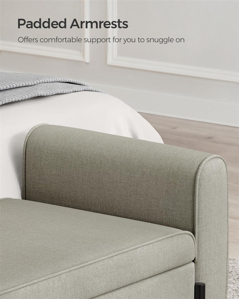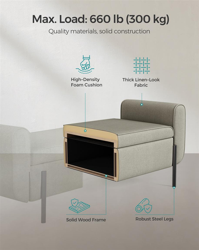 Material: Solid Wood, Steel, Linen-Look Fabric, High-Density Foam