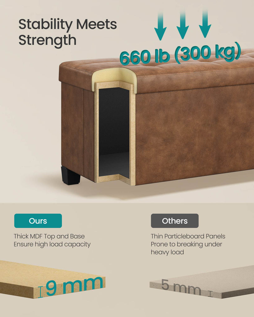 Material: PVC Leather, MDF (Medium Density Fiberboard), Foam Padding, Non-Woven Fabric