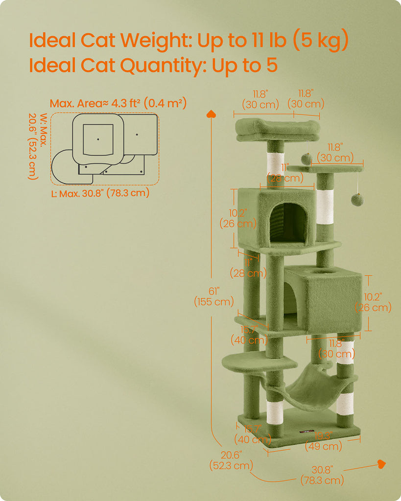 61" Tall Multi-Level Cat Tree with Scratching Posts
