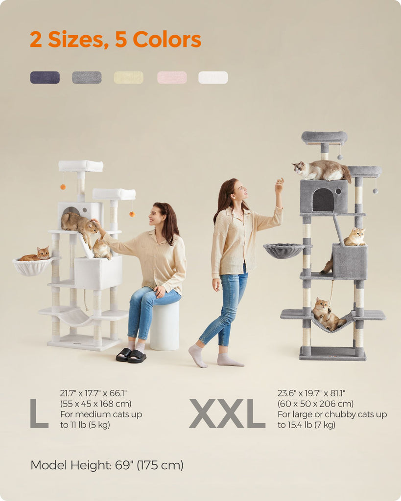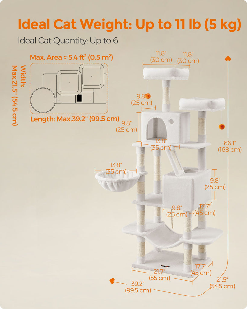 66.1" Tall Large Multi-Level Cat Tree with 13 Scratching Posts Cream White
