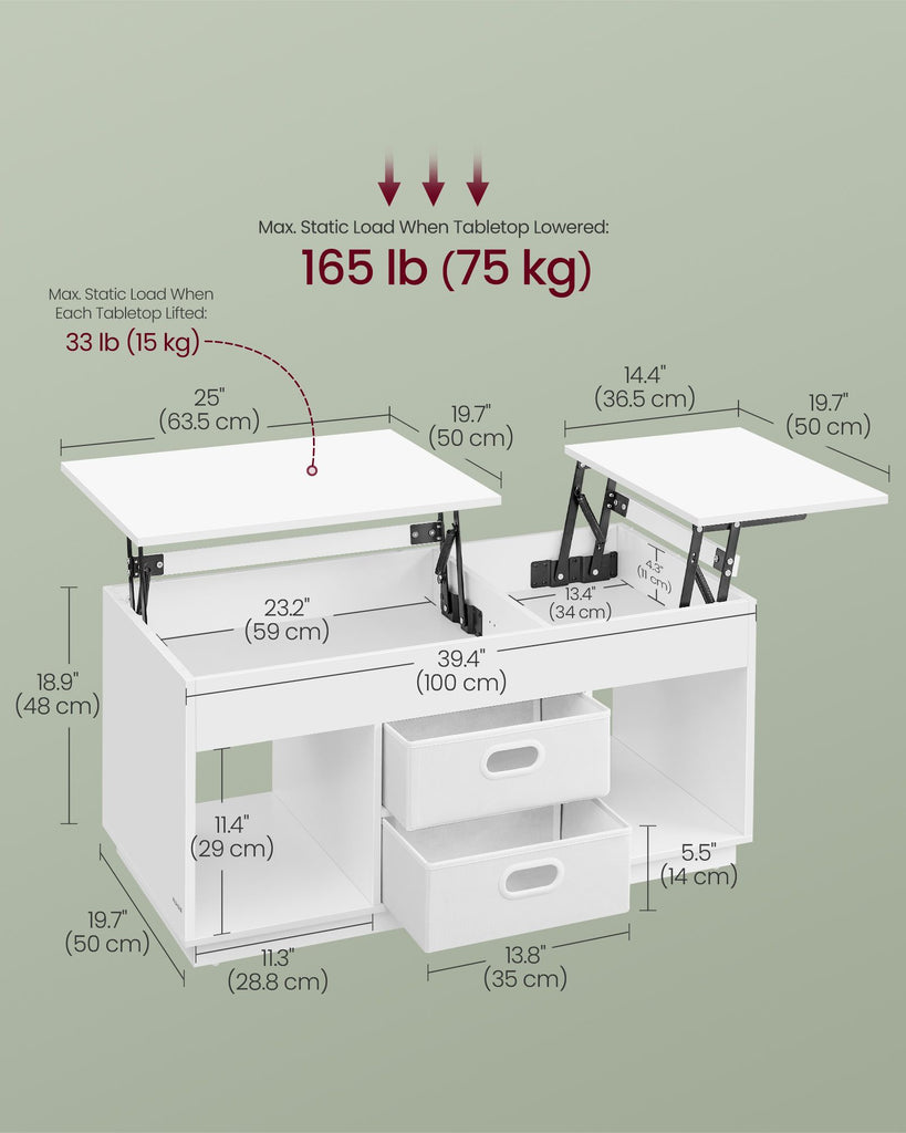 Lift-Top Coffee Table with 2 Drawers and Hidden Compartments