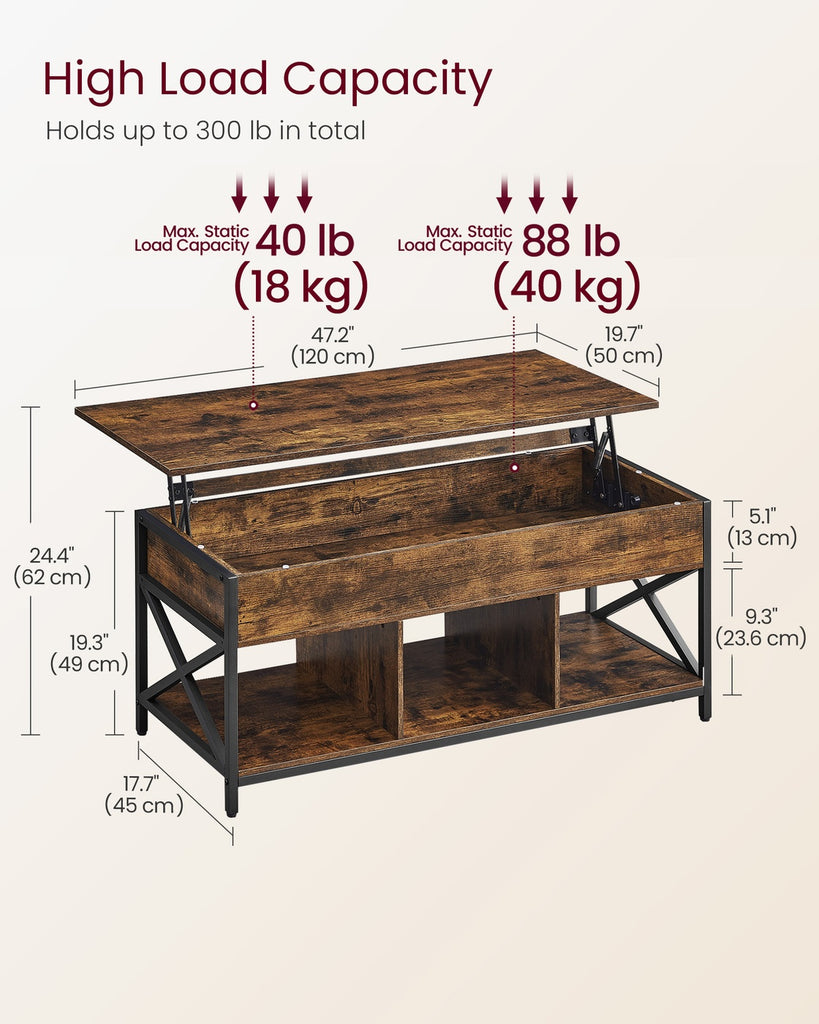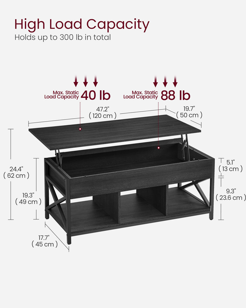 Max. Static Load of the Hidden Compartment: 88 lb (40 kg)