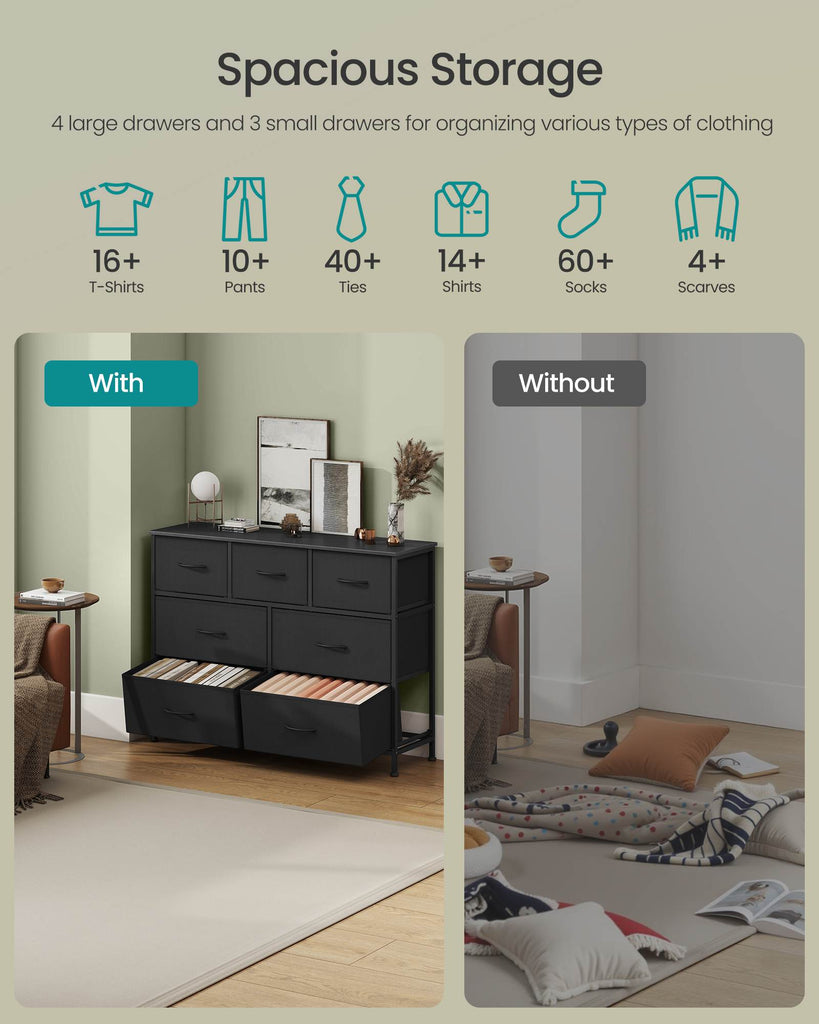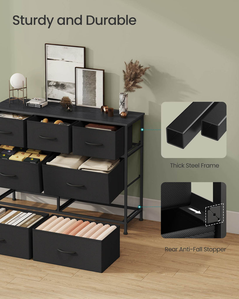 Dresser for Bedroom, 7-Drawer Storage Organizer & TV Stand, Ink Black, Steel Frame