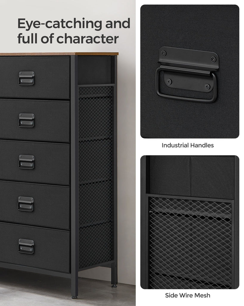 Dresser for Bedroom, Fabric Dresser with 10 Drawers, Storage Organizer Unit with Fabric Drawers, Chest of Drawers, Steel Frame, for Living Room, Entryway, Rustic Brown and Black