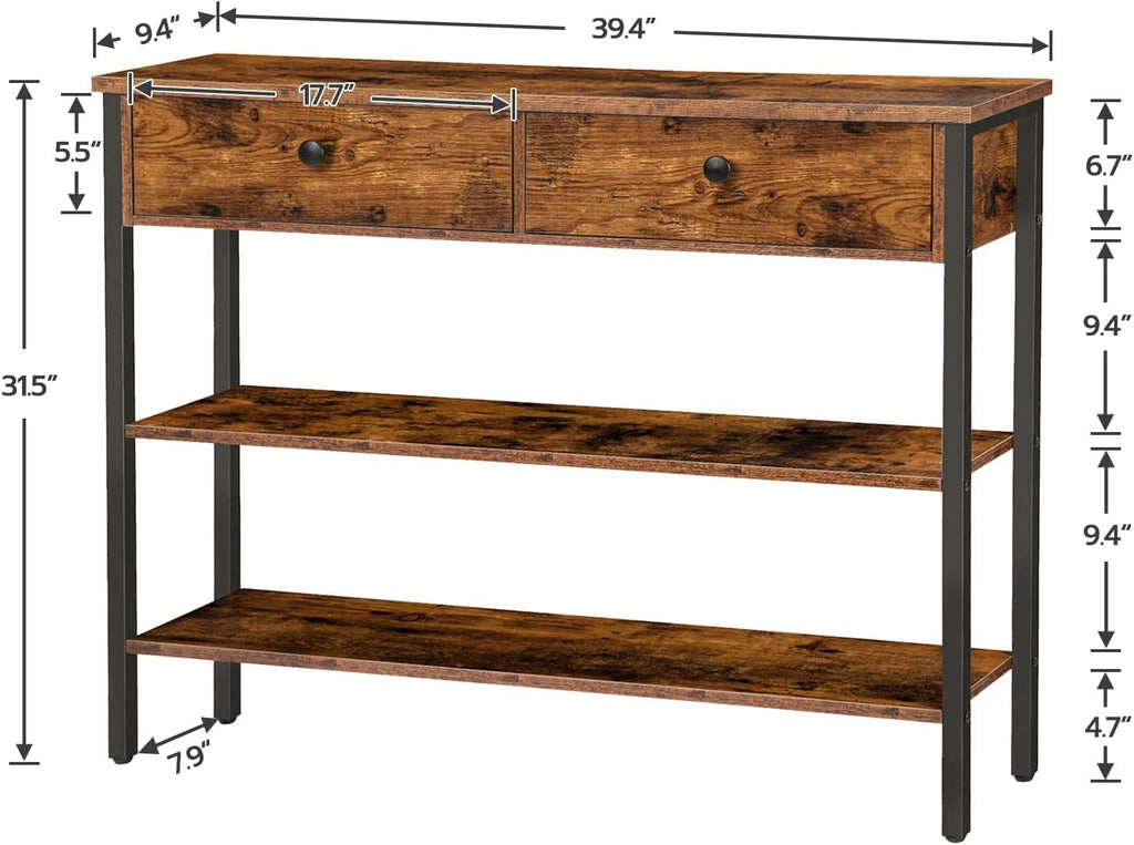 Console Table, Narrow Entryway Table with 2 Drawers and Shelves