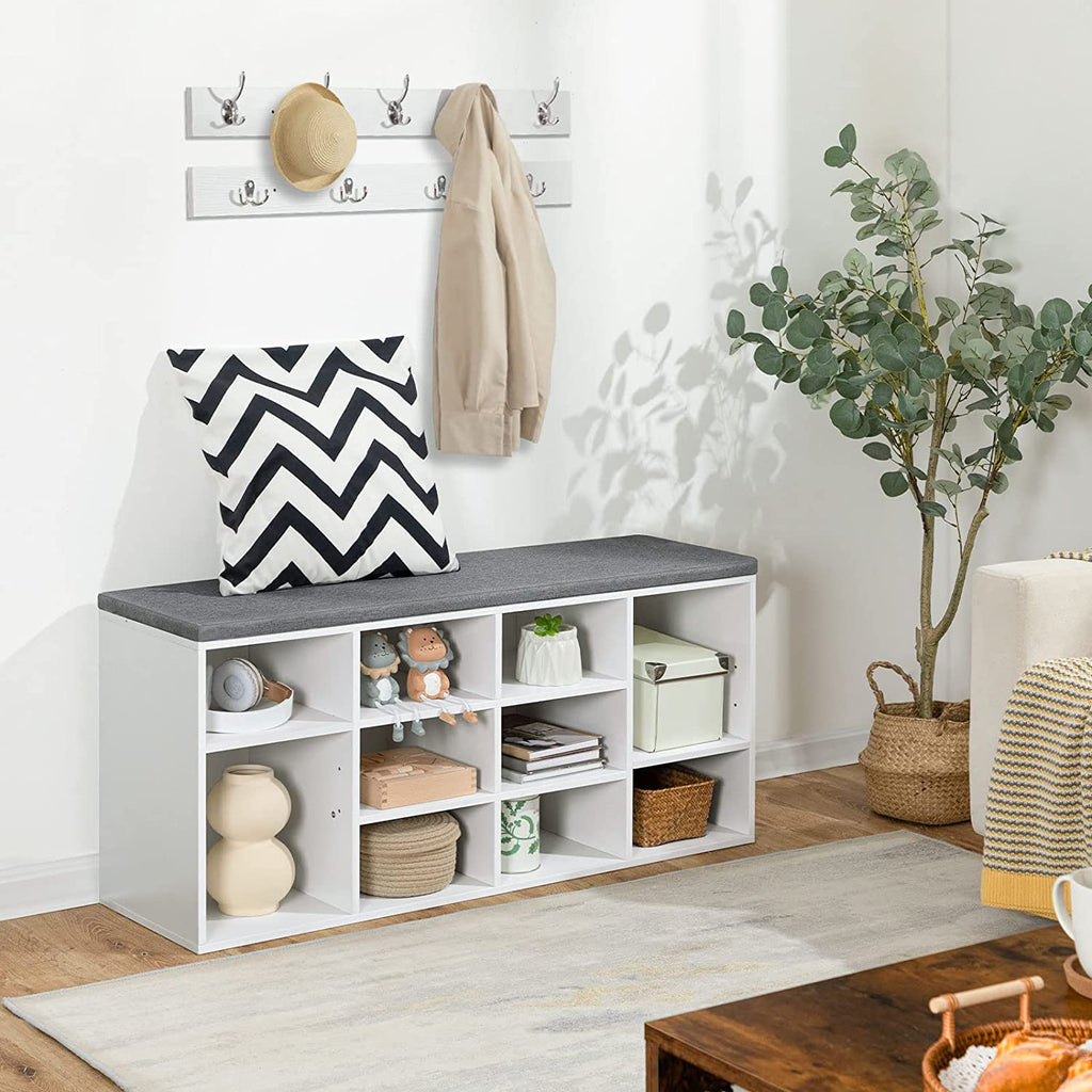 Coat Rack Shoe Bench, Cubby Storage Bench with Cushion