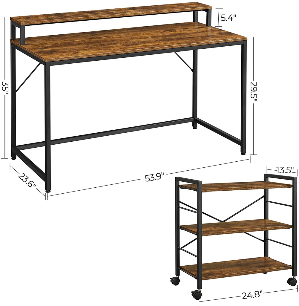 SPACIOUS UP TOP, SPACIOUS DOWN BELOW: Laptop, books, notebook, tablet, phone...keep all your work necessities close at hand with the 53.9”L x 23.6”W desktop; the 35” height allows for more leg space underneath.