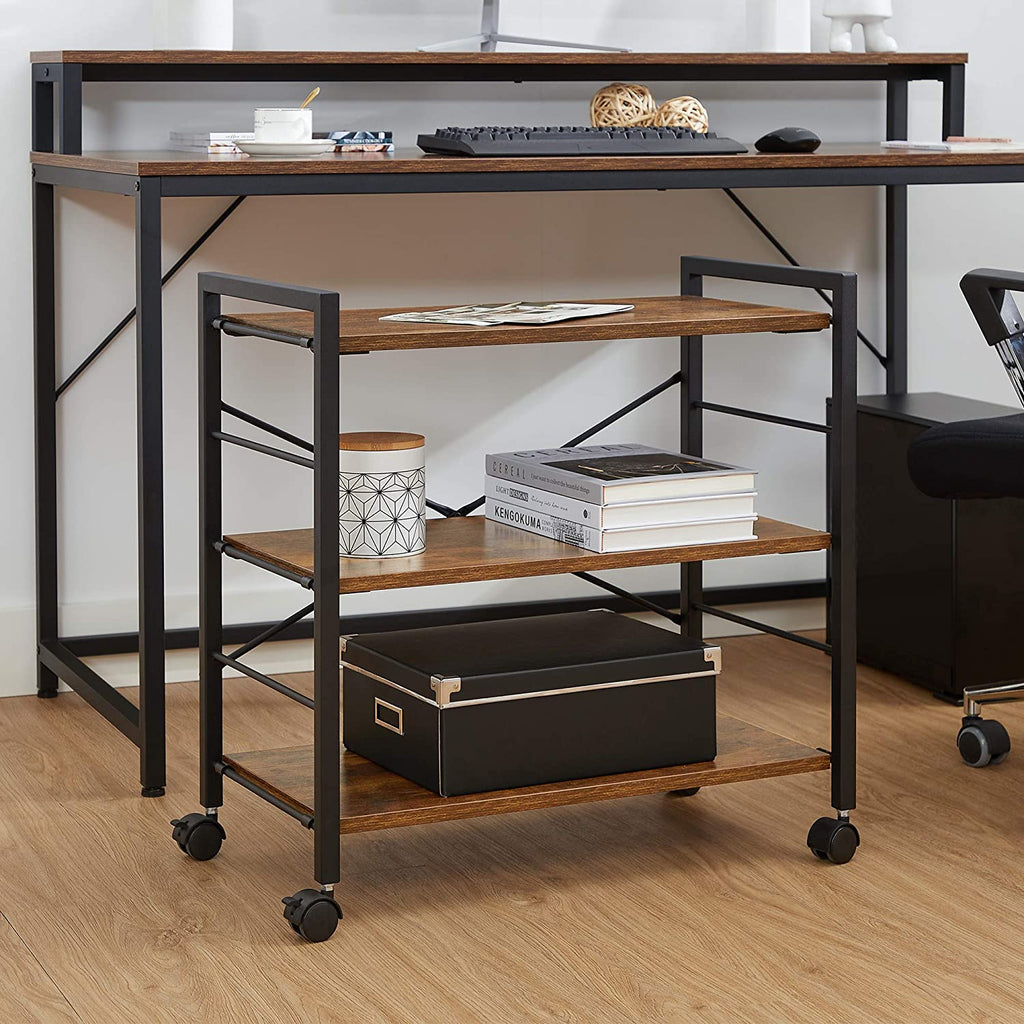 WHEEL OR STAY? Up to you. Keep the storage cart under your desktop as a file cabinet, use it in your kitchen for organizing spice jars, or in your dining area for serving dishes—the 4 wheels (2 with brakes) allow you to roll it where you need easily.