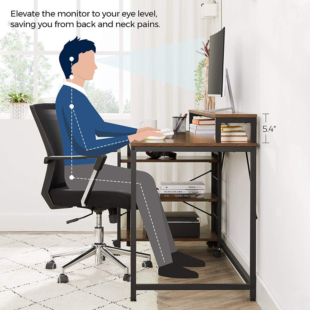 A LITTLE HIGHER, A LITTLE HEALTHIER: Raise up your screen by 5.5” with the equipped monitor stand shelf, so you can see everything at eye level and work in a healthy posture, saving you from working with neck and back pain.