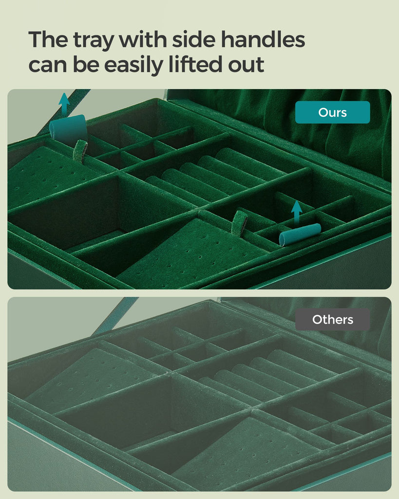 2-Layer Jewelry Box with Handle and Removable Jewelry Tray