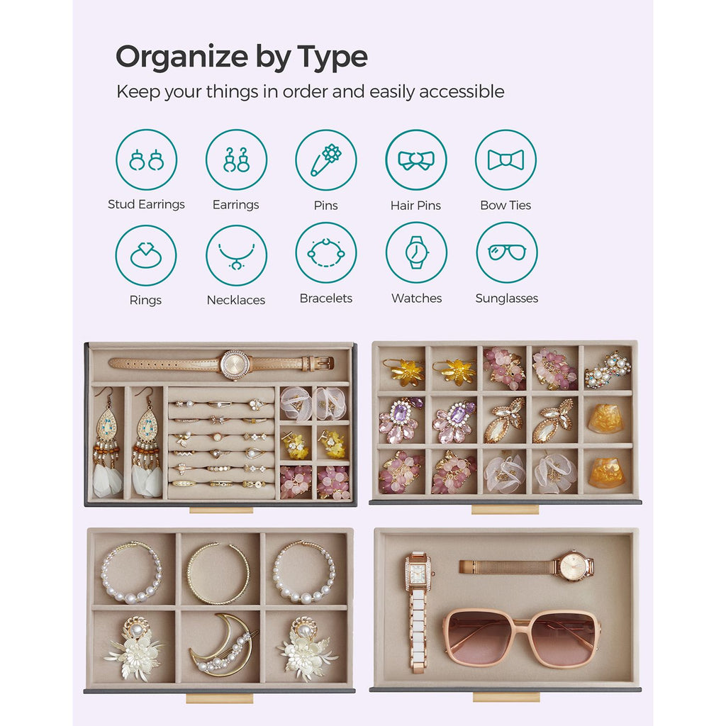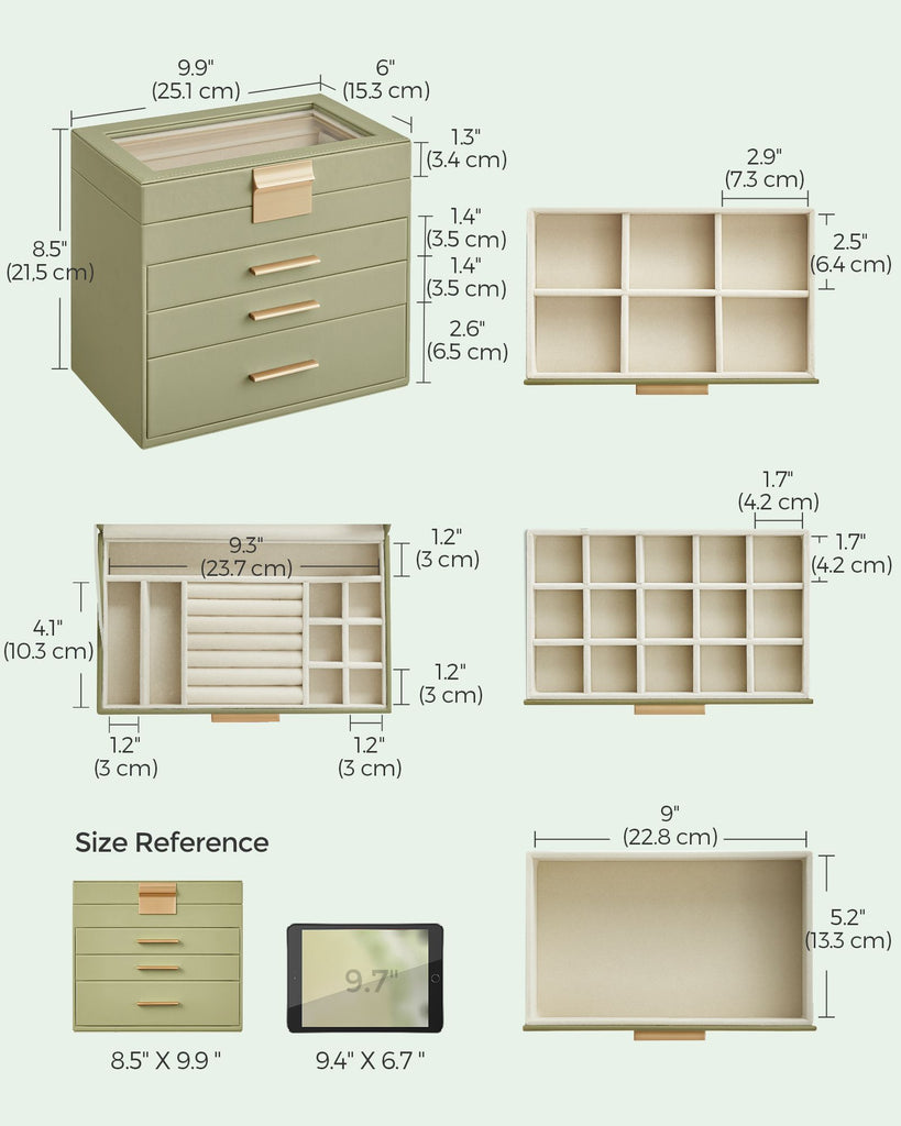 4-Layer Jewelry Box with Glass Lid for Big Jewelry