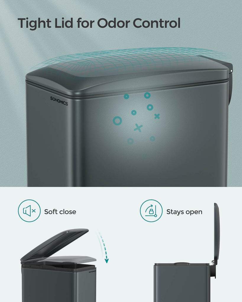 13-Gallon (50 L) Garbage Can for Narrow Spaces with Soft-Close Lid