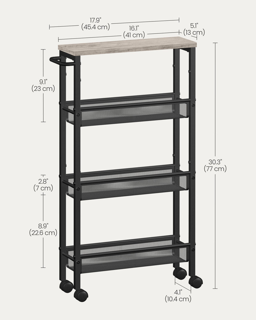 Product Size: 5.1"D x 17.9"W x 30.3"H (13 x 45.4 x 77 cm)