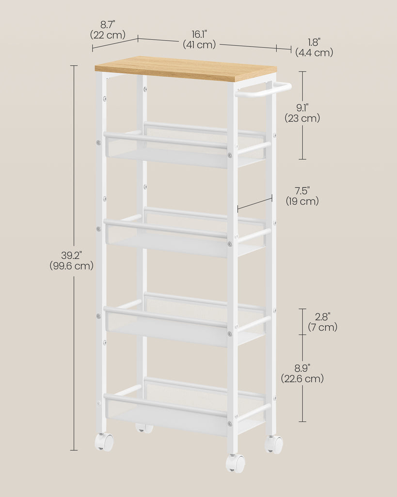 Product Size: 8.7"D x 17.9"W x 39.2"H (22 x 45.4 x 99.6 cm)