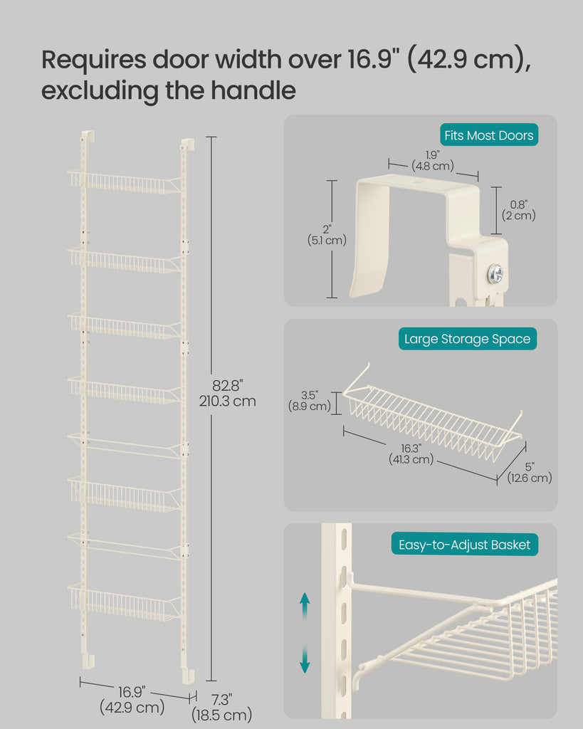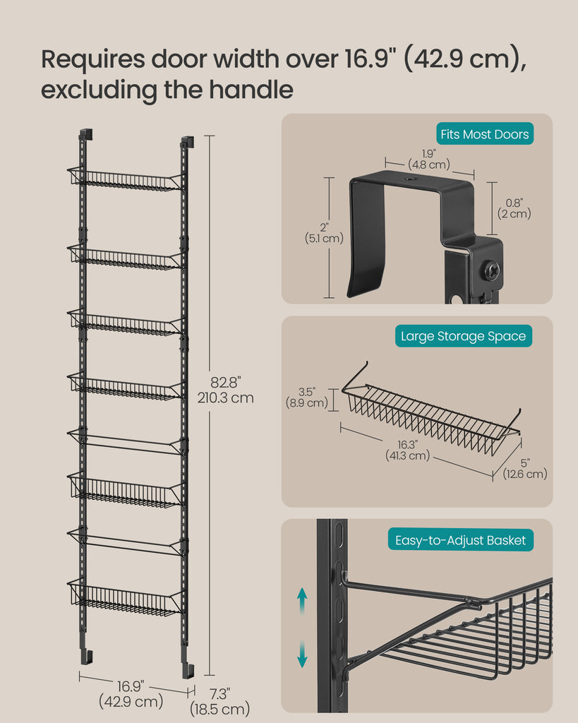Product Size: 7.3"D x 16.9"W x 82.8"H (18.5 x 42.9 x 210.3 cm)
