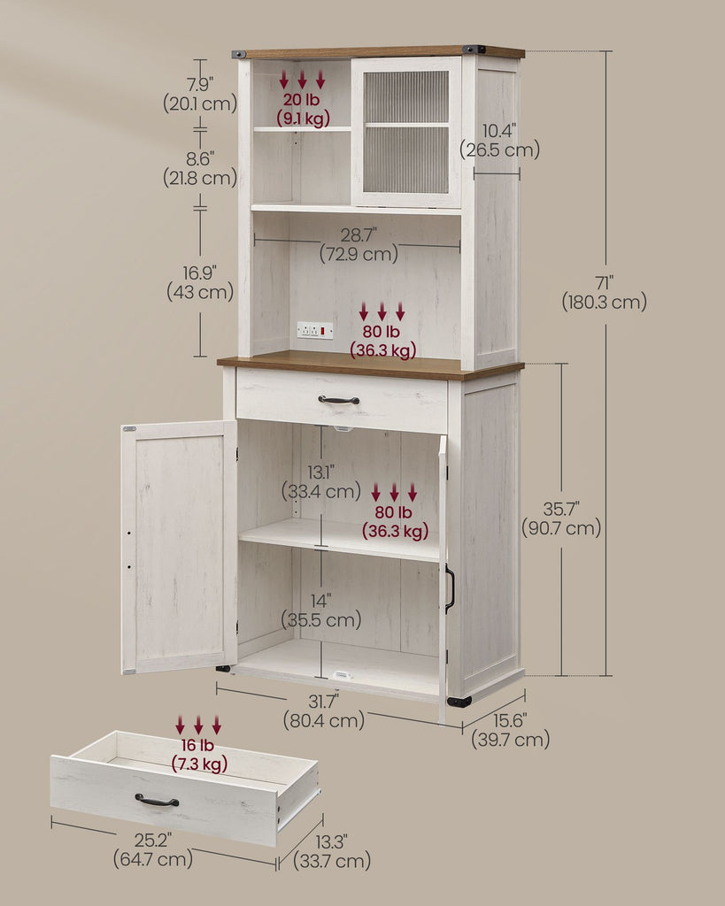Max. Static Load Capacity of the Shelf in the Bottom Cabinet: 80 lb (36.3 kg)