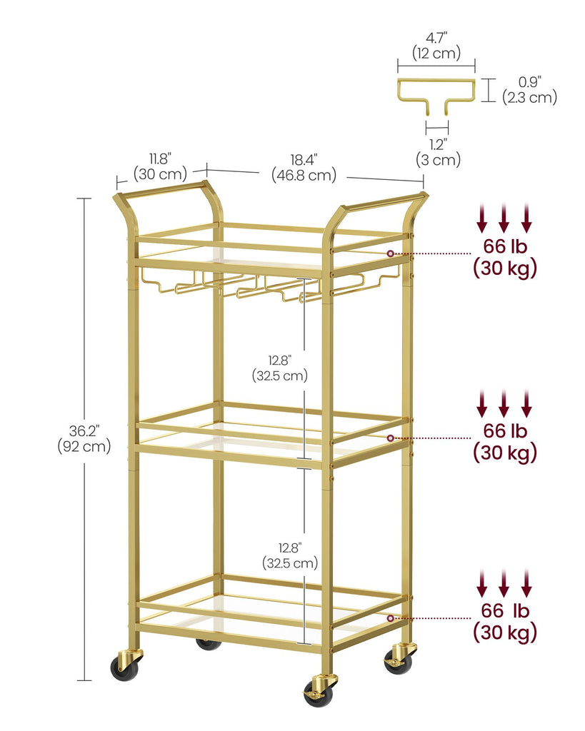Max. Static Load Capacity of Each Shelf: 66 lb (30 kg)