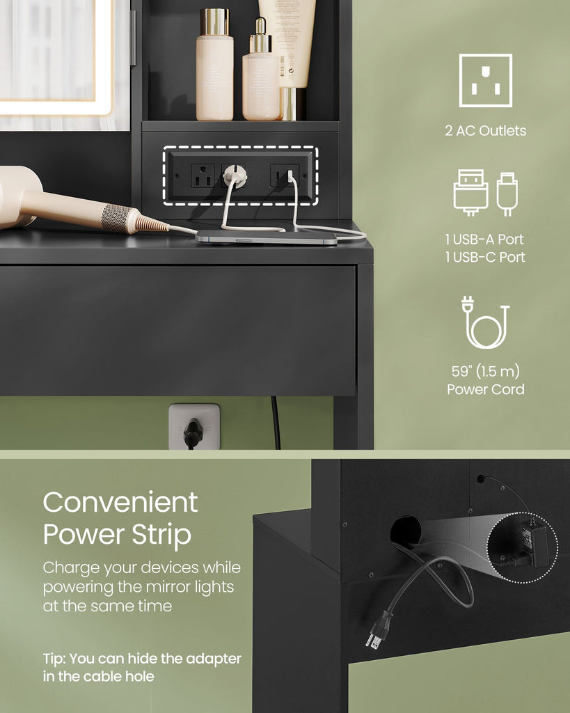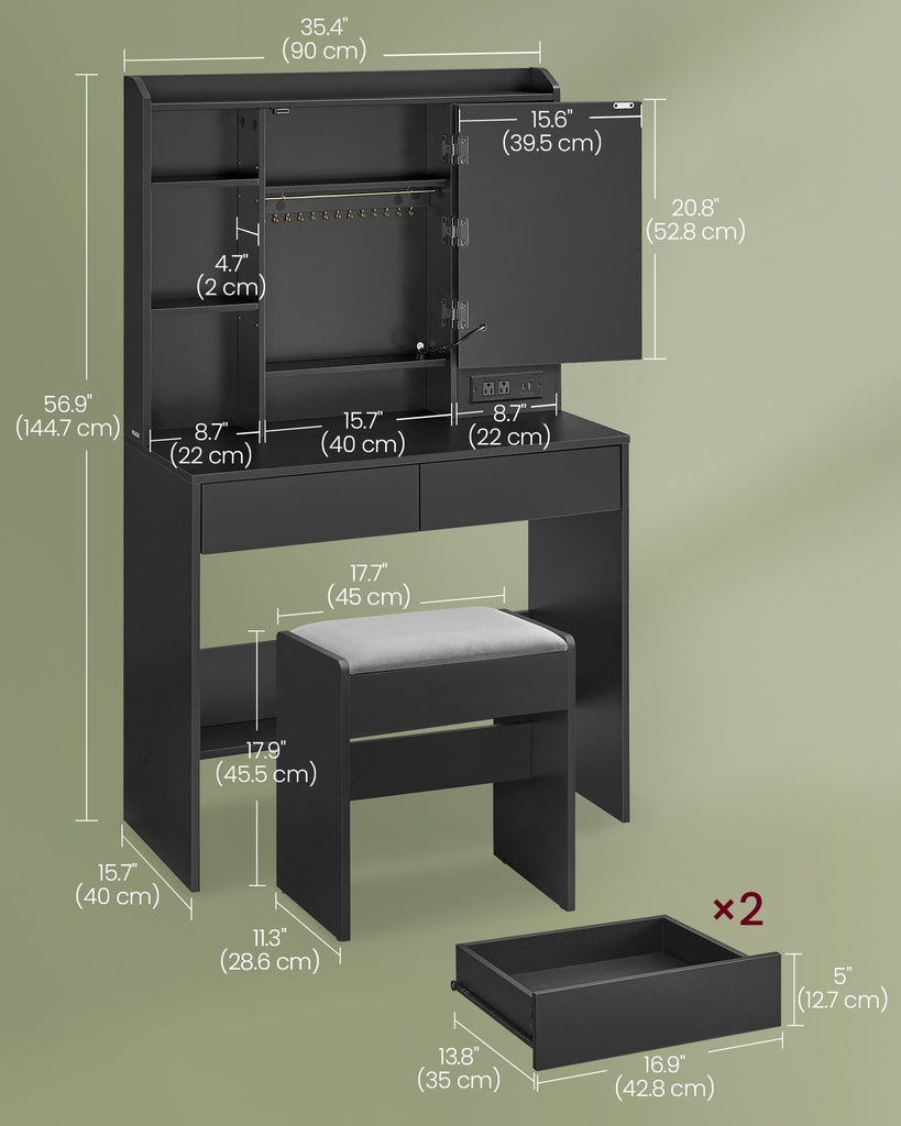Size of the Vanity Desk: 15.7"D x 35.4"W x 56.9"H (40 x 90 x 144.7 cm)