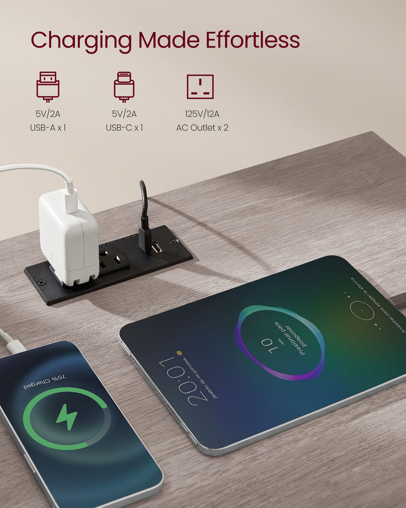 MAXE Collection - Set of 2 Nightstands with Charging Station, Bedside Table, Side End Table with 2 Drawers