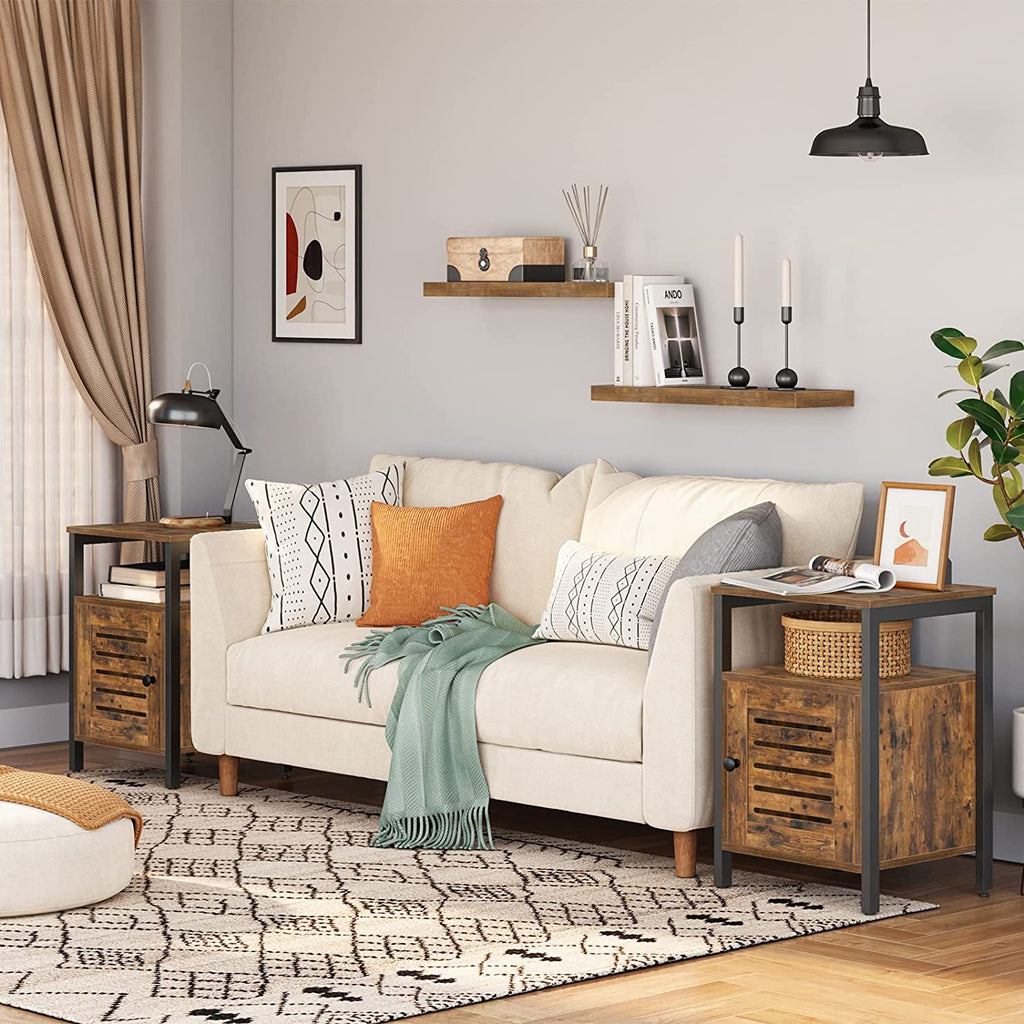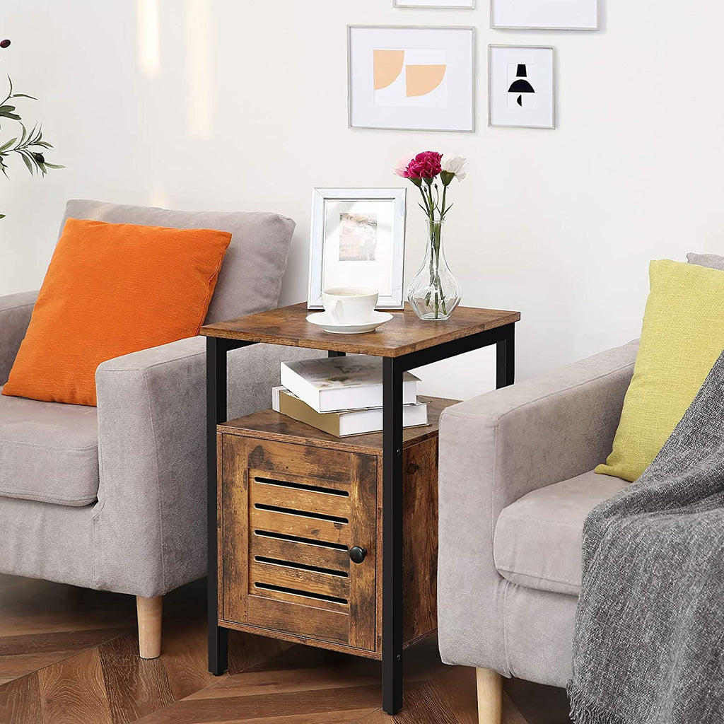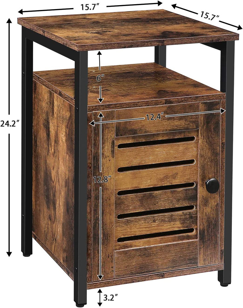 Space-saver Storage Solution: Bed sidetables dimensions: 15.7'' L x 15.7'' W x 24'' H (40 x 40 x 60 cm). The end table goes behind a sofa or up against the wall while takes a small amount of space. The all-round table also serves as a hub that enables to easily place books, coffee cup, phone on the table.