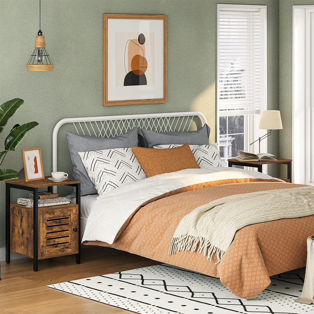 Carving Ingenuity: Constructed with thick iron frame, the structure is well treated by skilled craftman and load-bearing. No paint falling, no rust. The CARB P2 grade particleboard top covered with wood grain veneer is wearing-resistant and super easy to care. To level the night table on uneven ground and offer floor protection, we also add four adjustable feet that can be screwed into the legs.