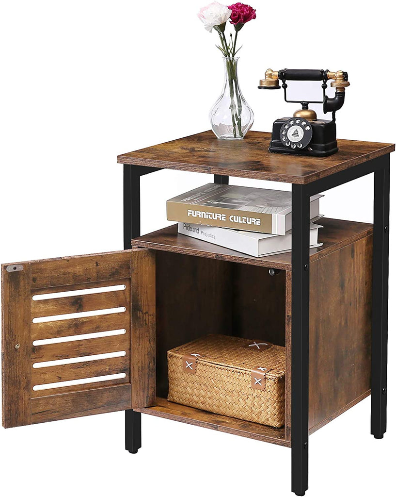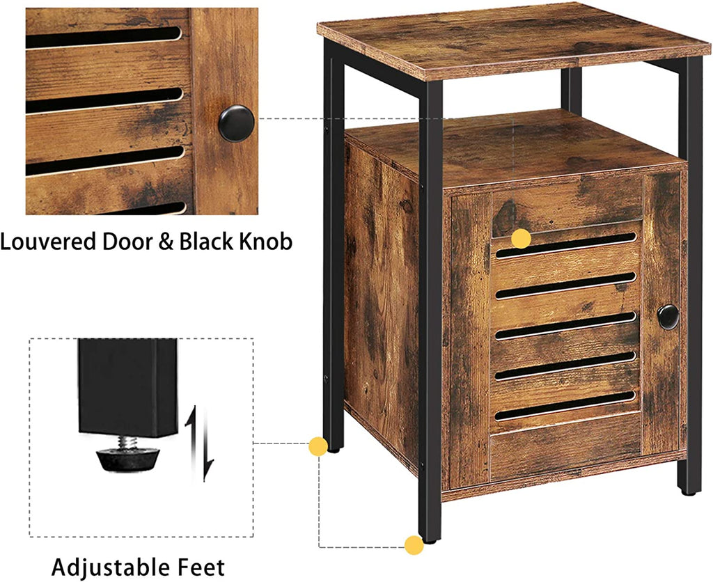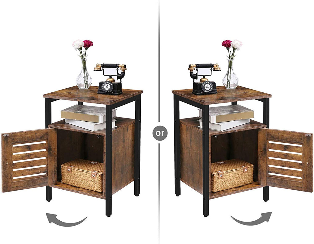 Nightstand, Shutter End Table with Switchable Door and Inner Storage, Square Side Table