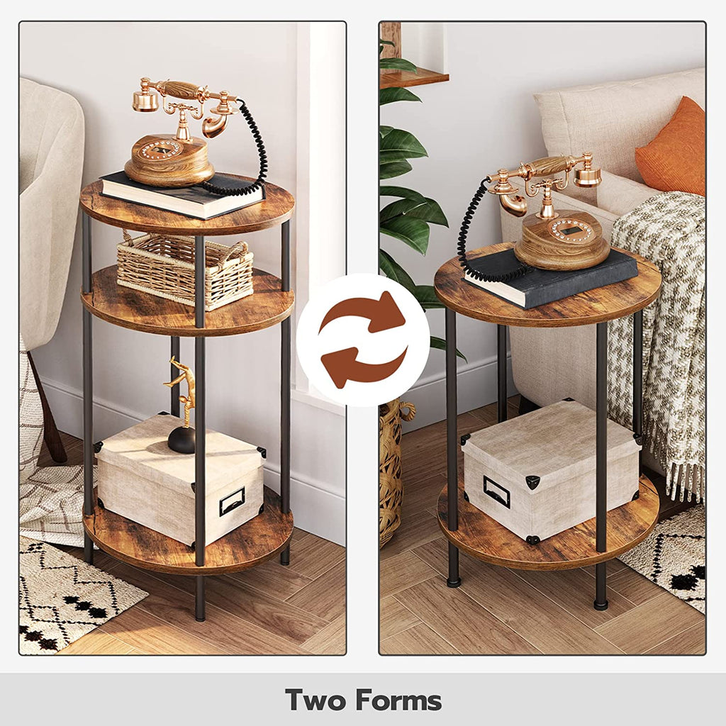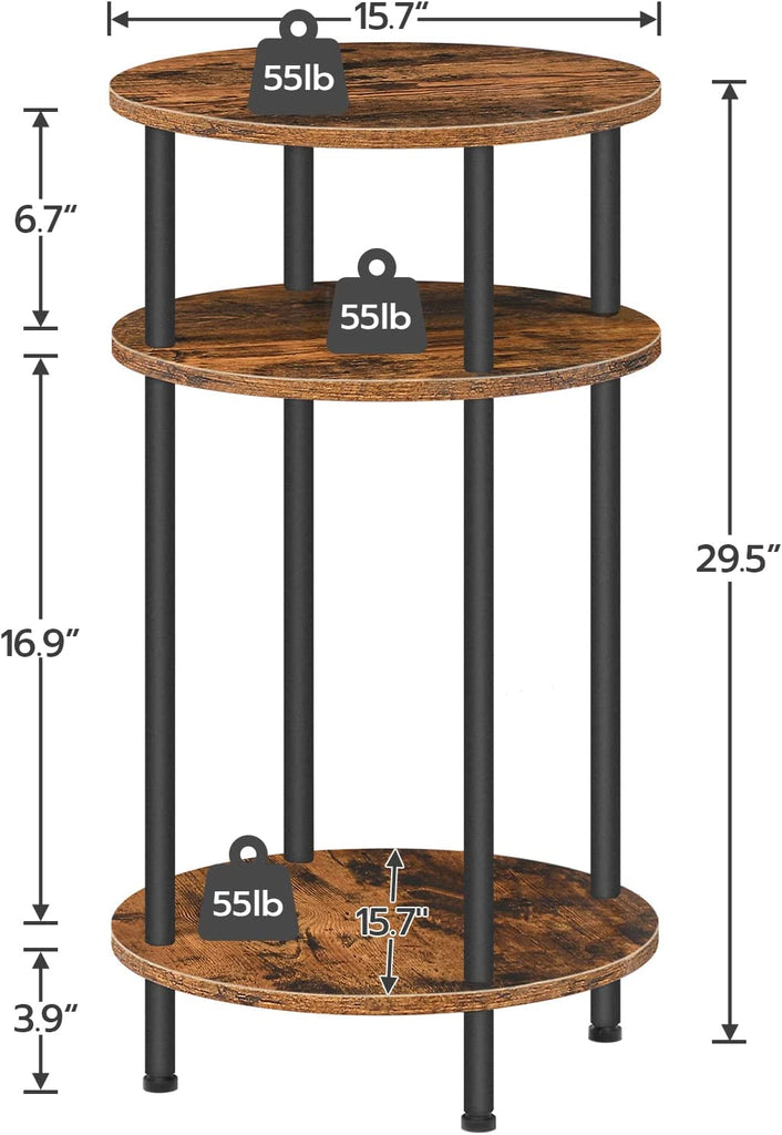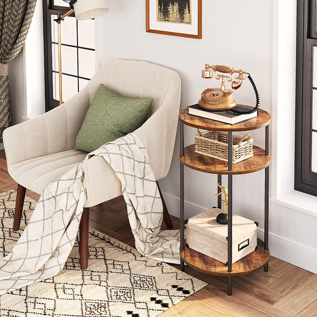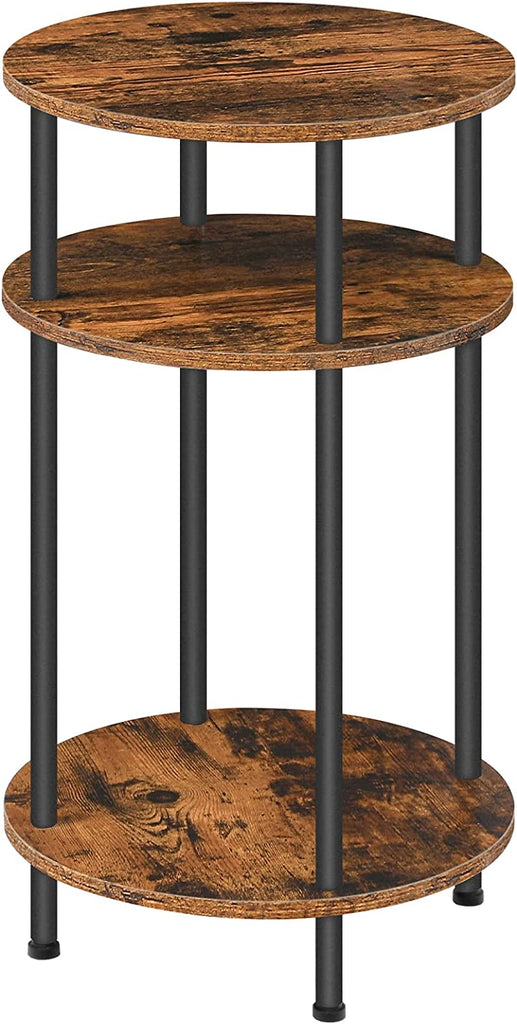 Smart Design: With an industrial style, rustic wooden color paired with a black metal frame, gives this side table a traditional pub feel. It can match any furniture in your room. The round and practical 3-tier storage design can be used as a telephone table, as a sofa table for coffee cups, remote control, and as a nightstand for lamps and alarm clocks.
