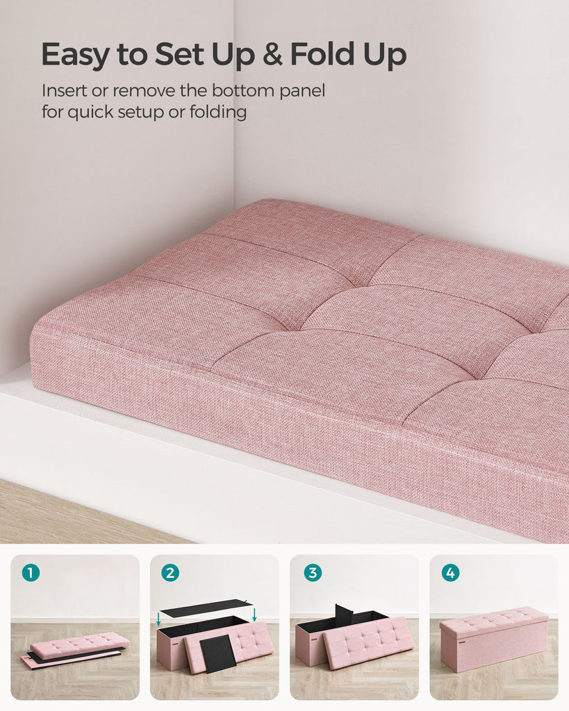 MAZIE Collection 43" Wide Folding Storage Ottoman Bench Jelly Pink