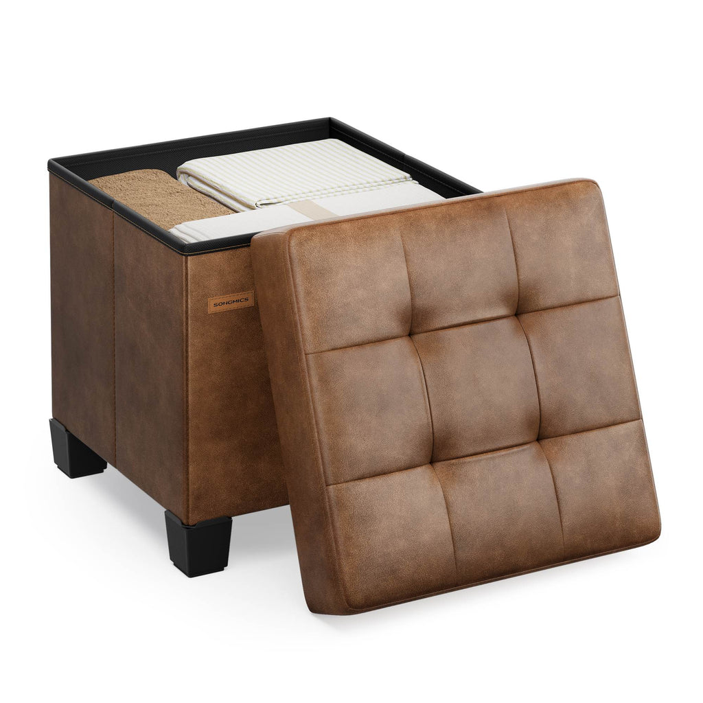 Storage Ottoman, 660 lbs Capacity, Foldable, Faux Leather, Coffee Brown