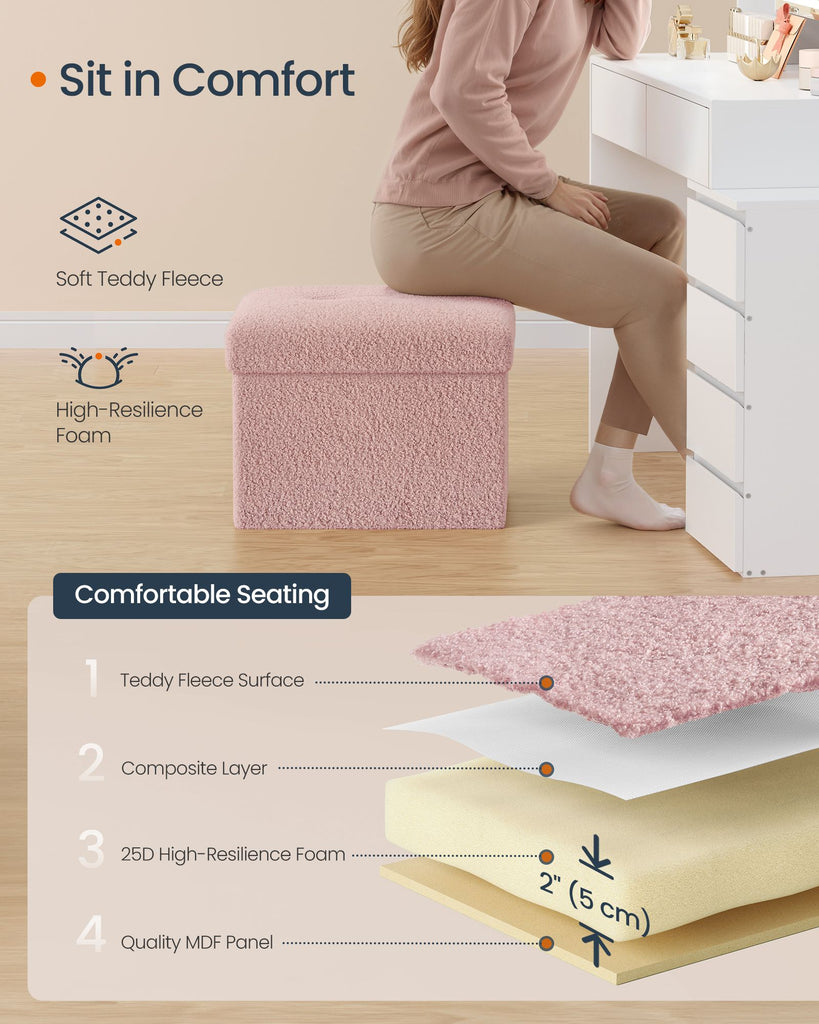 Storage Ottoman Bench, Storage Chest, 12.2 x 16.1 x 12.2 Inches, End of Bed Bench, Load up to 286 lb, for Living Room, Bedroom, Entryway