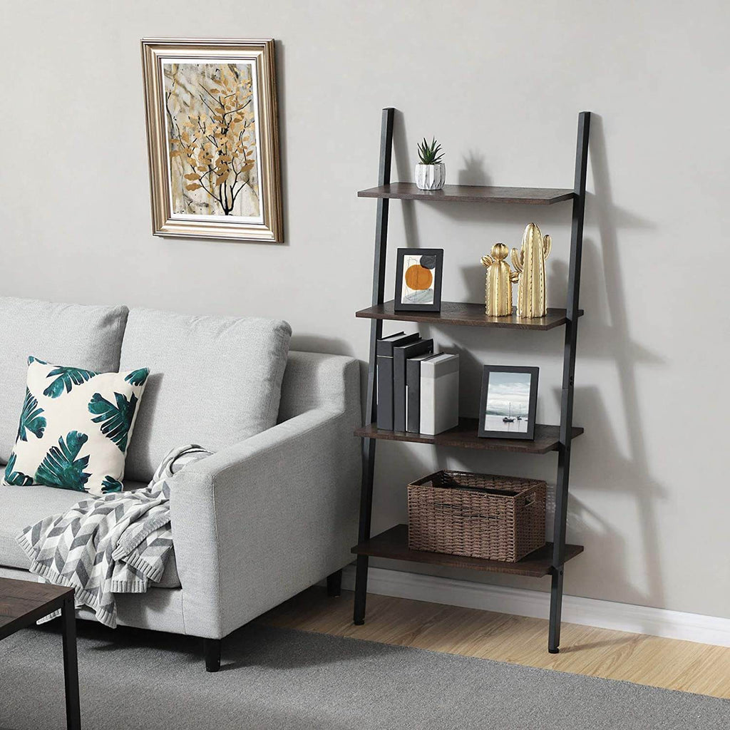 PRACTICALLY ON SO MANY LEVELS: The bookshelf has four differently sized layers in a deep brown color, on which you can place decorations, plants or other objects up to 88. 2 lb. (40 kg). The robust iron frame (20 x 40 mm perimeter) provides excellent support.
