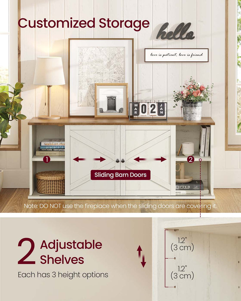 Farmhouse TV stand with storage cabinets and sliding barn doors
