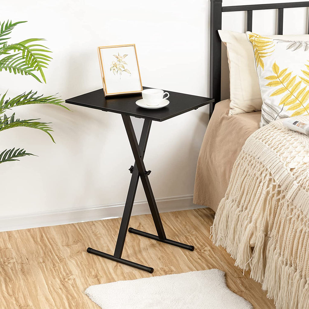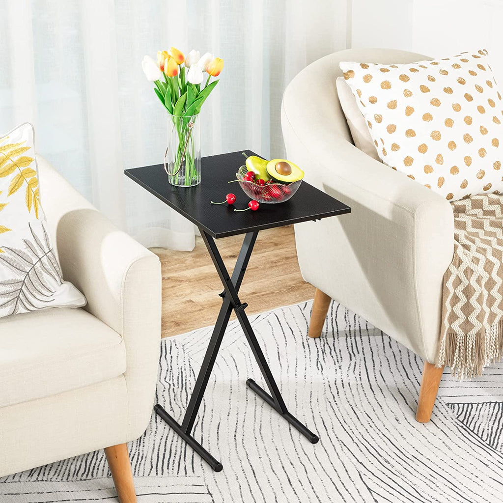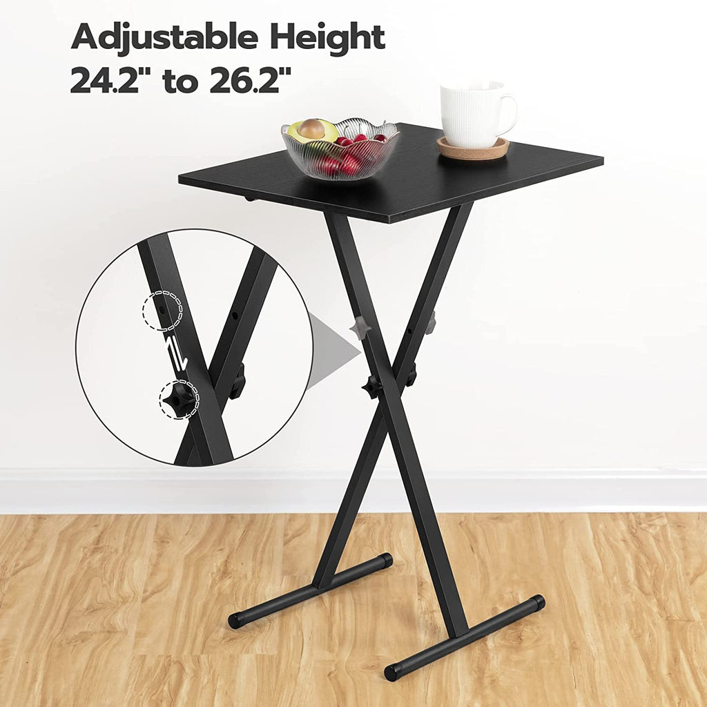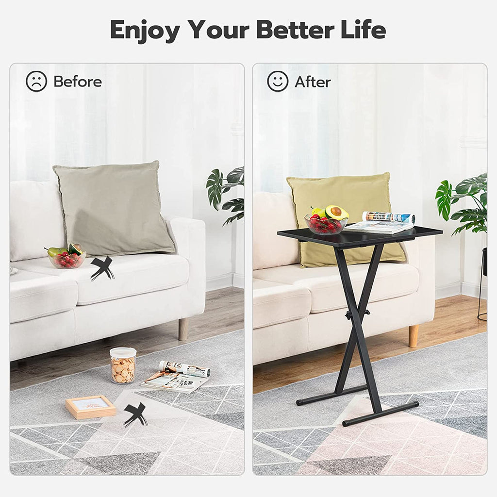 Fashionable yet Simple: Combining an X-shaped support with the rustic black particleboard, this elegant industrial TV tray showcases a uniquely sophisticated appeal. This couch table tray will be sparking in your home thanks to its high integration with your home furniture. So if you want to match or contrast a coffee table, sofa, or armchair, a TV tray is an ideal choice for you!