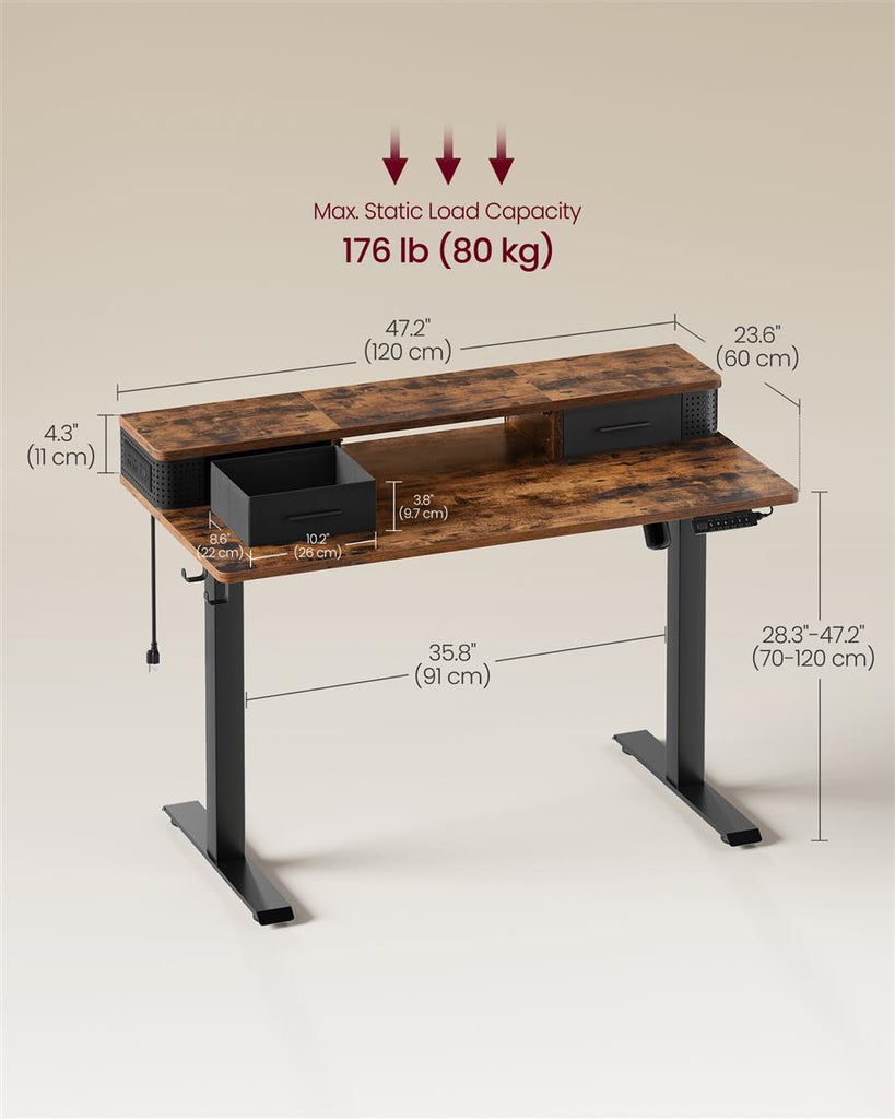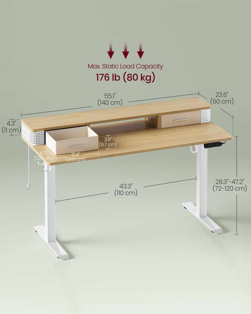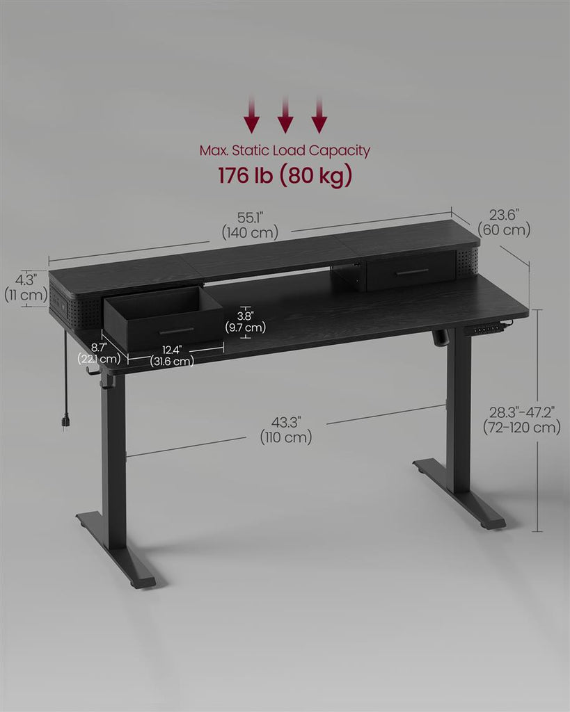 Product Size: 23.6"D x 55.1"W x (28.3"-47.2"H) (60 x 140 x 72-120 cm)
