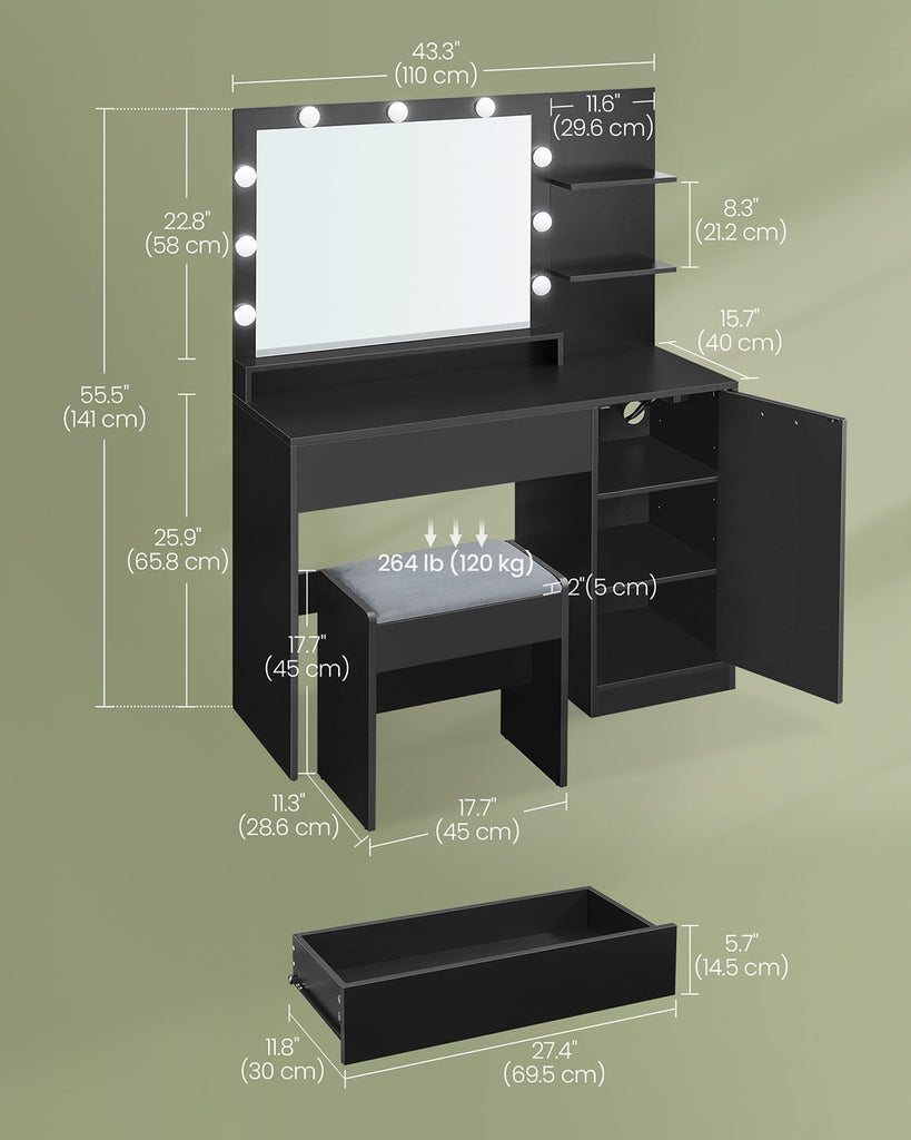 Size of the Vanity Desk: 15.7""D x 43.3""W x 55.5""H (40 x 110 x 141 cm)
