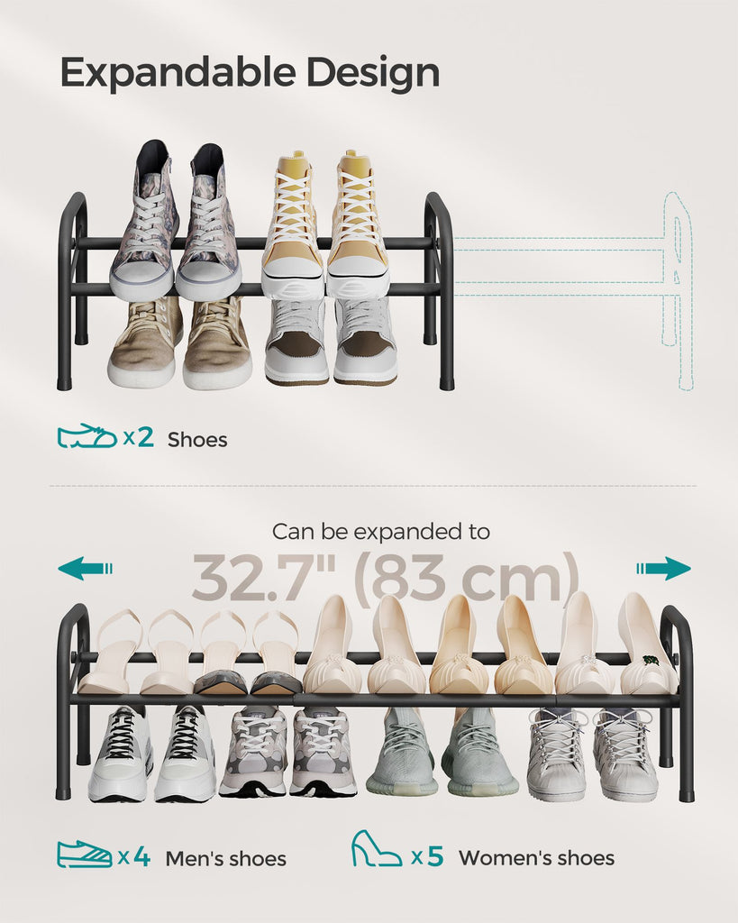 1 Tier Expandable Shoe Rack, Holds up to 10 Pairs of Shoes