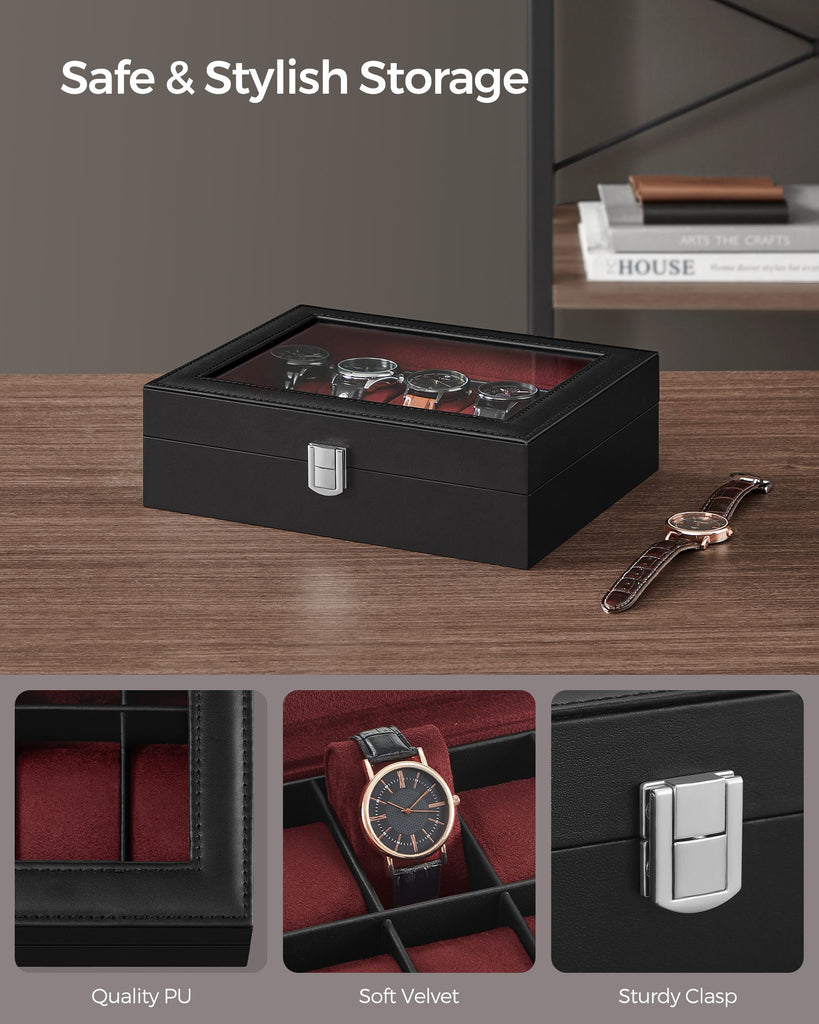 Material: MDF (Medium Density Fiberboard), PU (Polyurethane), Velvet Lining, Glass