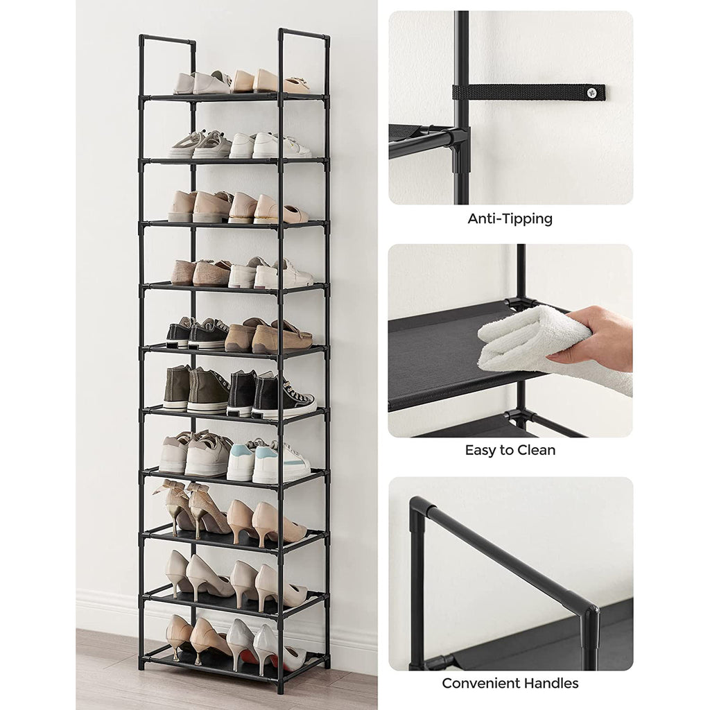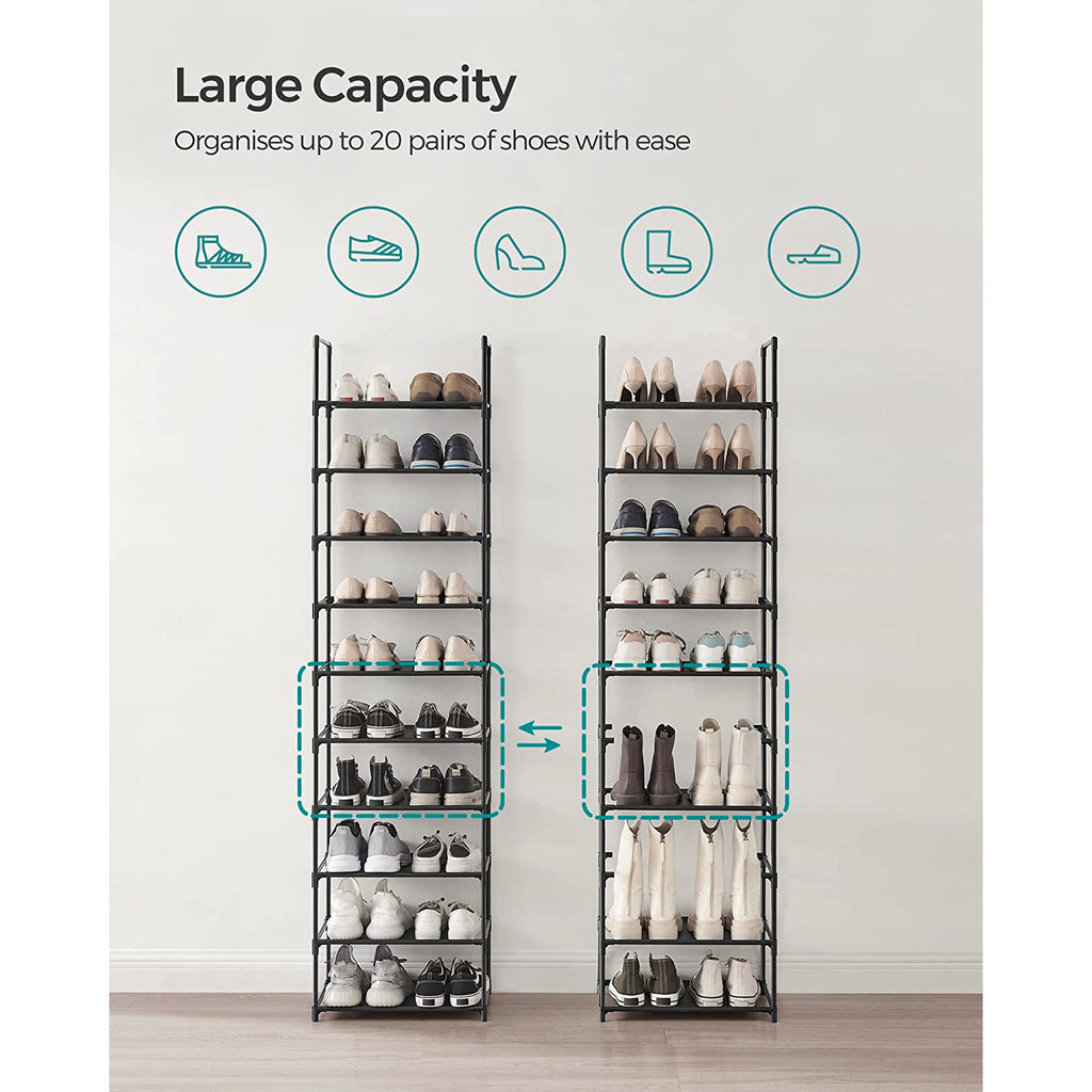 10-Tier Shoe Shelf with Metal Frame