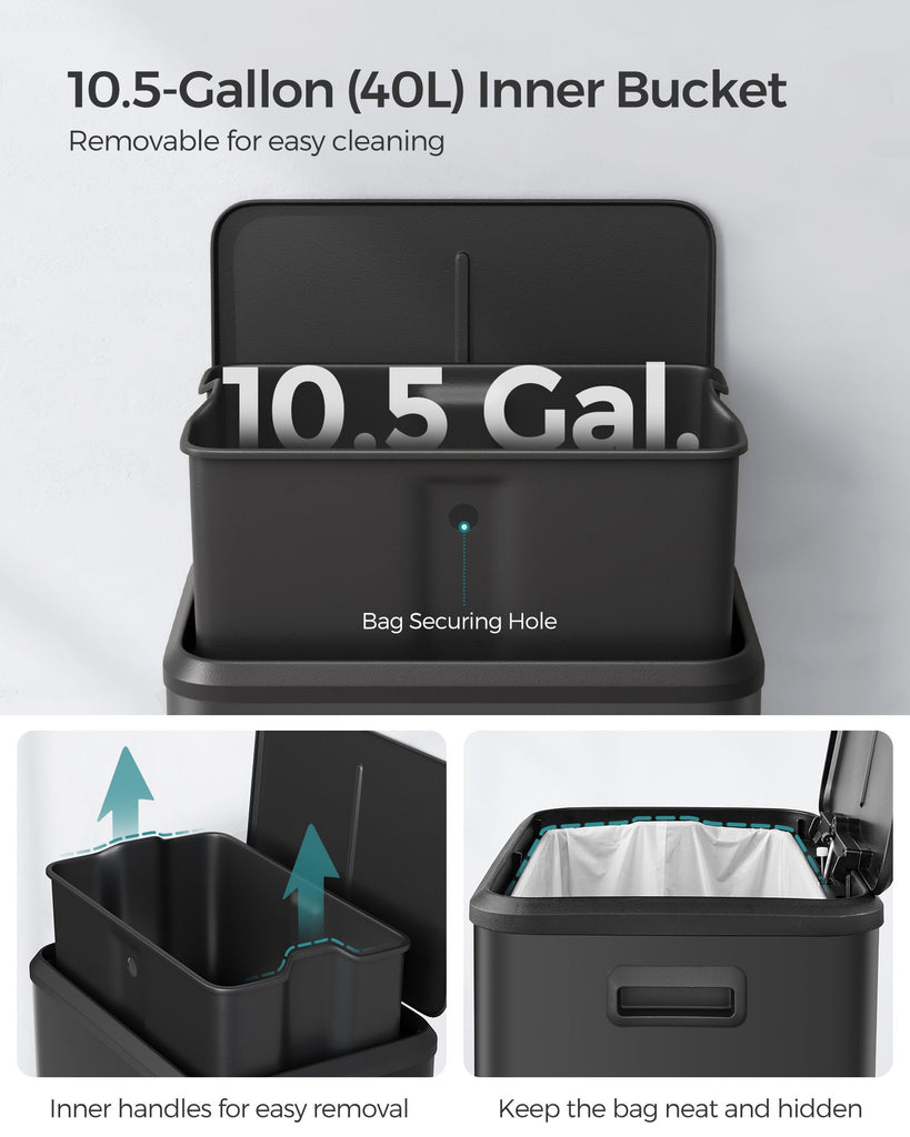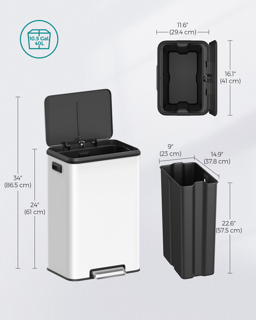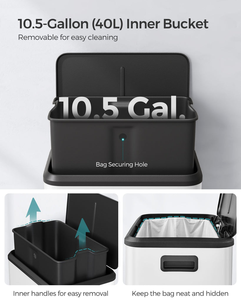 10.5-Gallon (40L) Kitchen Trash Can with Lid and Wide Foot Pedal
