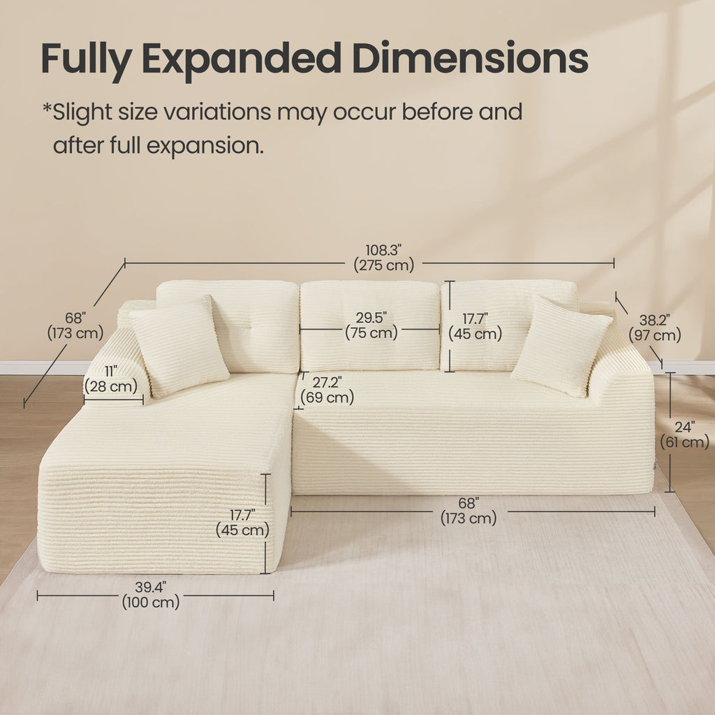 108.3 Inches Boneless Couch with Chaise, Modular Sectional Sofa