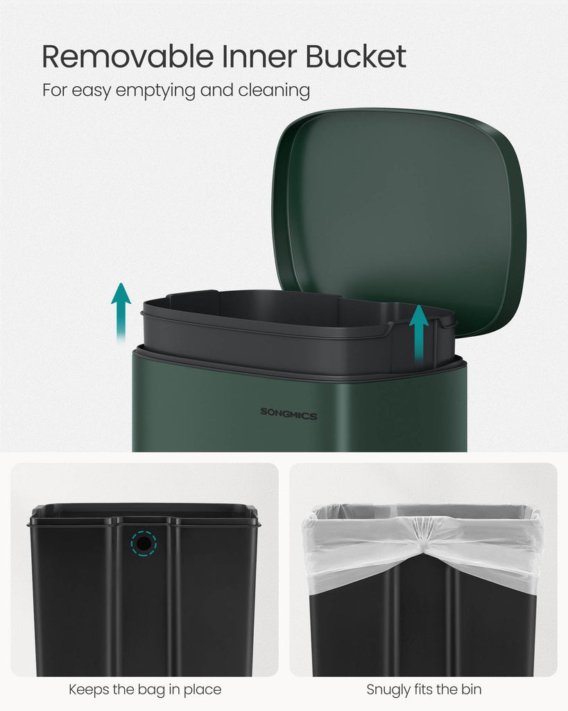 Material: Stainless Steel Bin, Plastic Inner Bucket