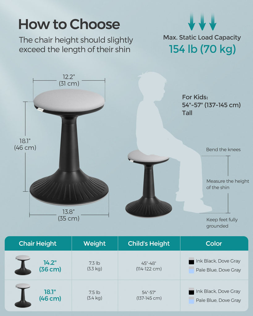 14.2" High Wiggle Stool for Kids Ages 8-12