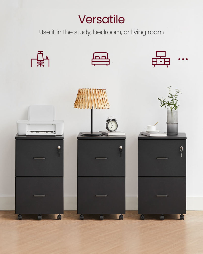 2-Drawer File Cabinet, Locking Filing Cabinet, Black