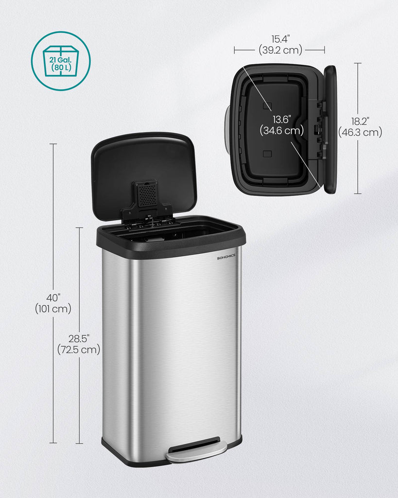 21 Gallon (80 L) Stainless Steel Garbage Can
