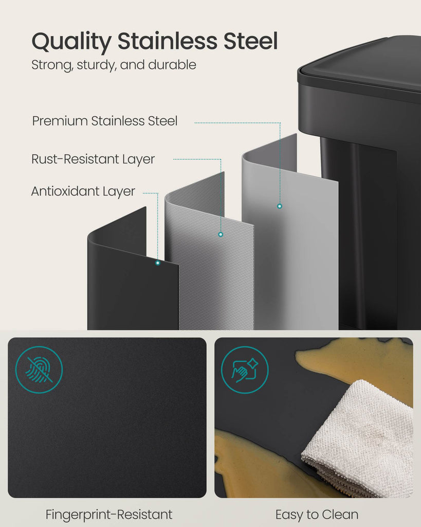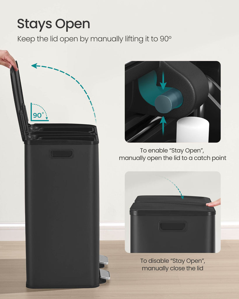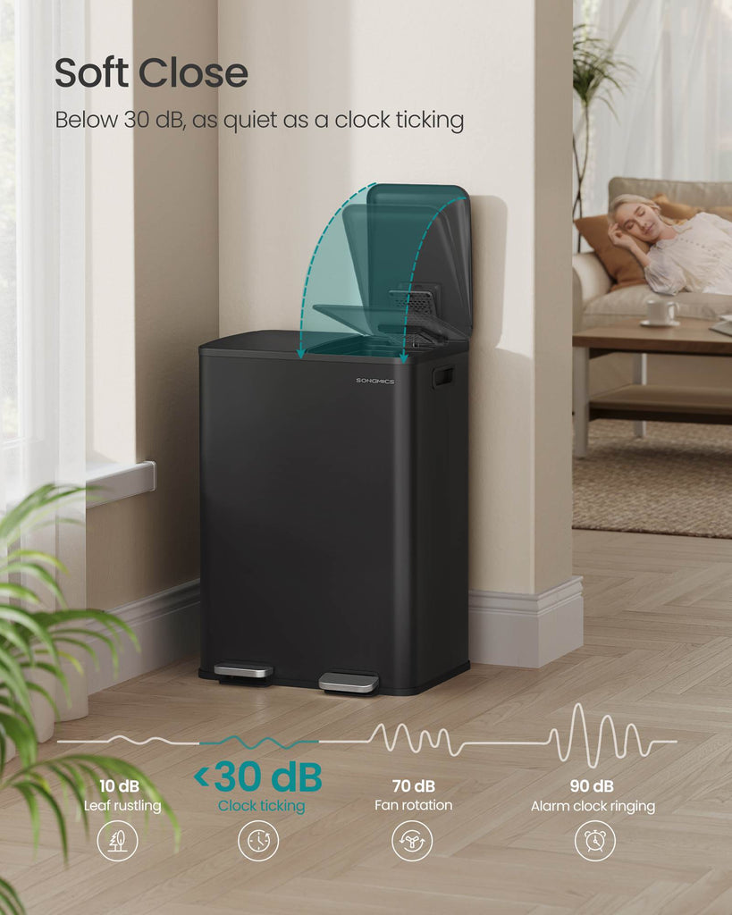 230L Dual Compartment Trash Can, Soft-Close, Pedal, Removable Buckets, Stainless Steel