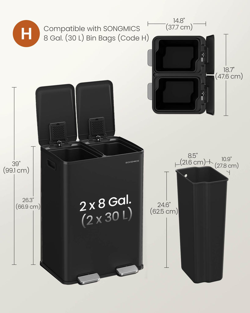 Size of Each Inner Bucket: 10.9"L x 8.5"W x 24.6"H (27.8 x 21.6 x 62.5 cm)