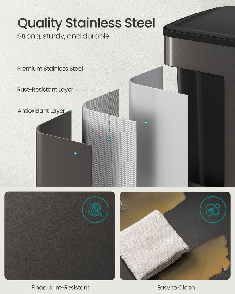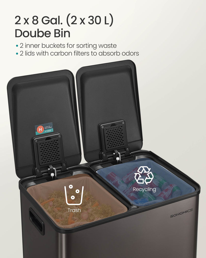28 Gal (230L) Dual Trash Can, Soft-Close, Pedal, Stainless Steel, Gray