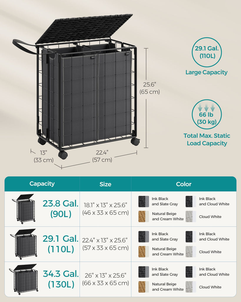 Max. Static Load Capacity Total: 66 lb (30 kg)