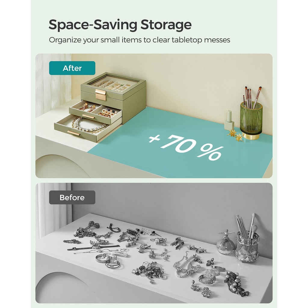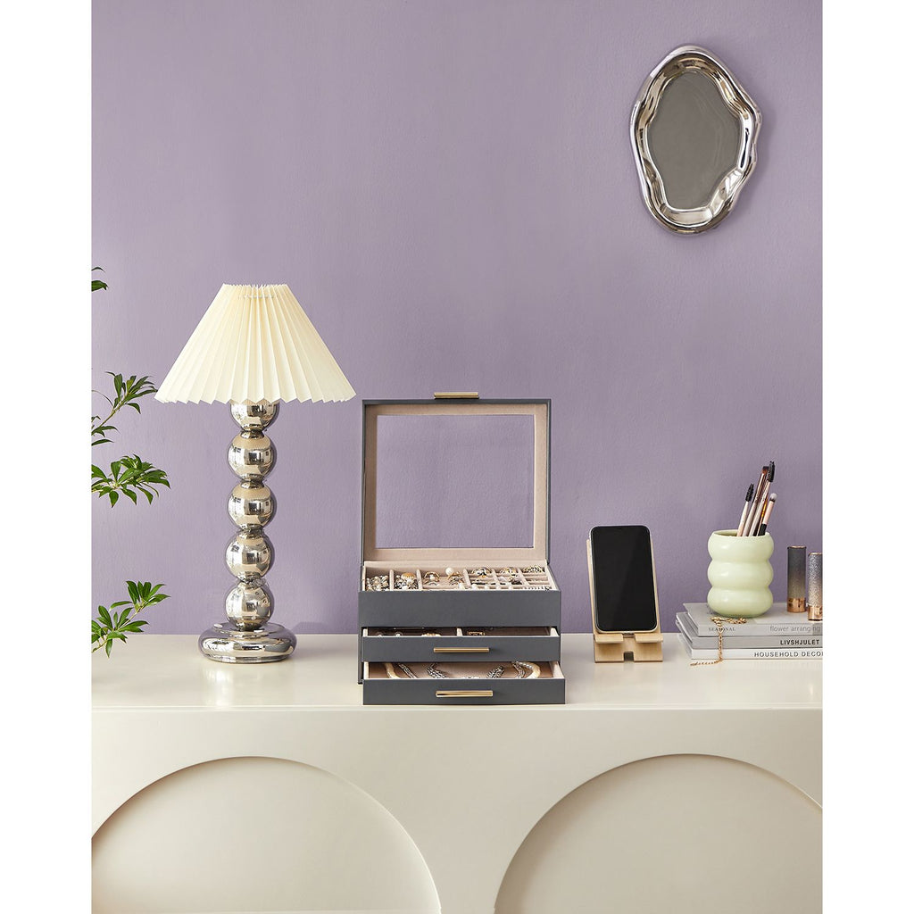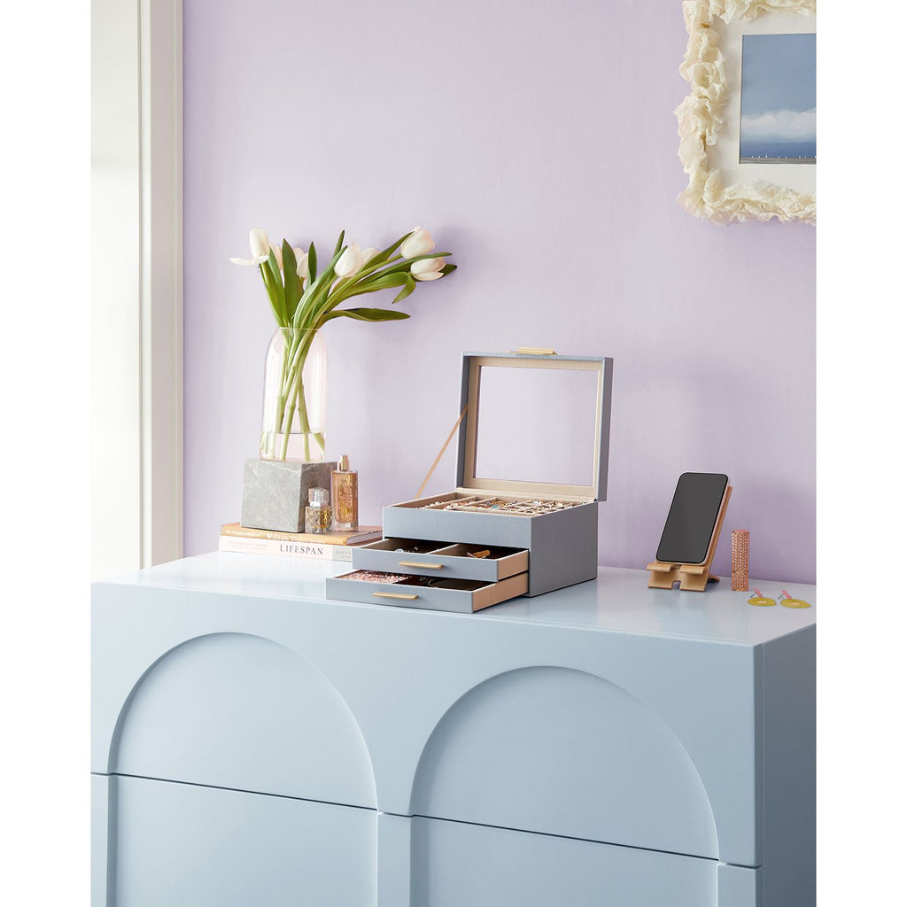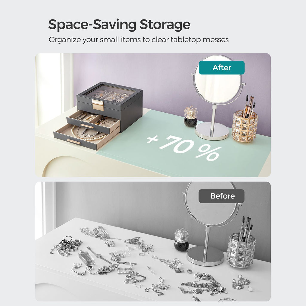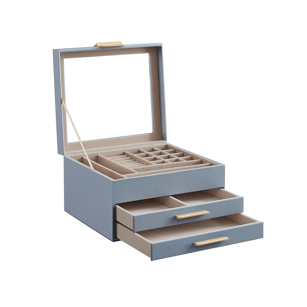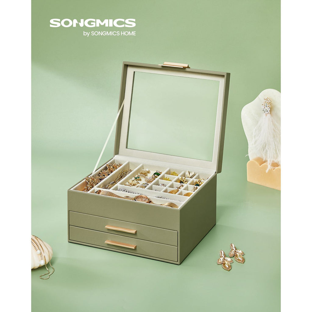 3-Layer Jewelry Box with Glass Lid, 2 Drawers